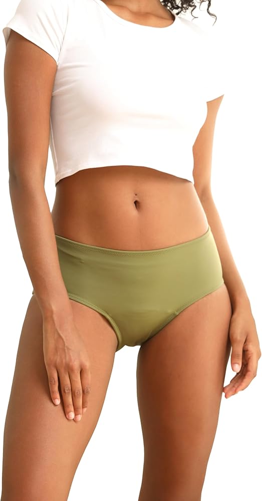 Confidence in Every Dive: Goat Union menstrual period swimwear briefs, featuring integrated layers—outer for water resistance, inner for absorbing up to 2 tampons, and leak-proof design. Light, breathable, and ideal for women and teens on light to medium flow days during water activities.