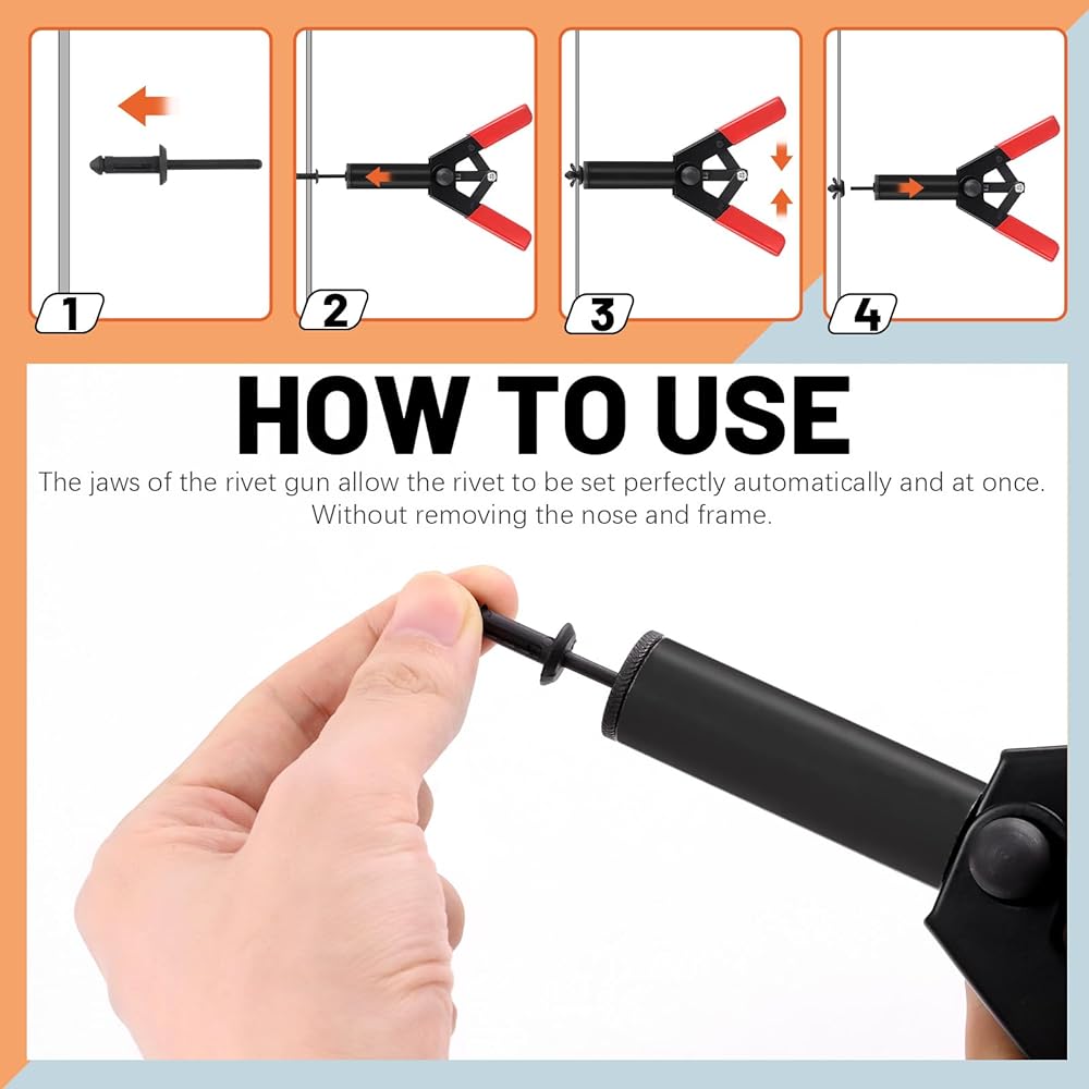 Product: Nylon Blind Rivets, Rivet Gun, Fastener Removal Tool, Precision Hook Set, Storage Bag