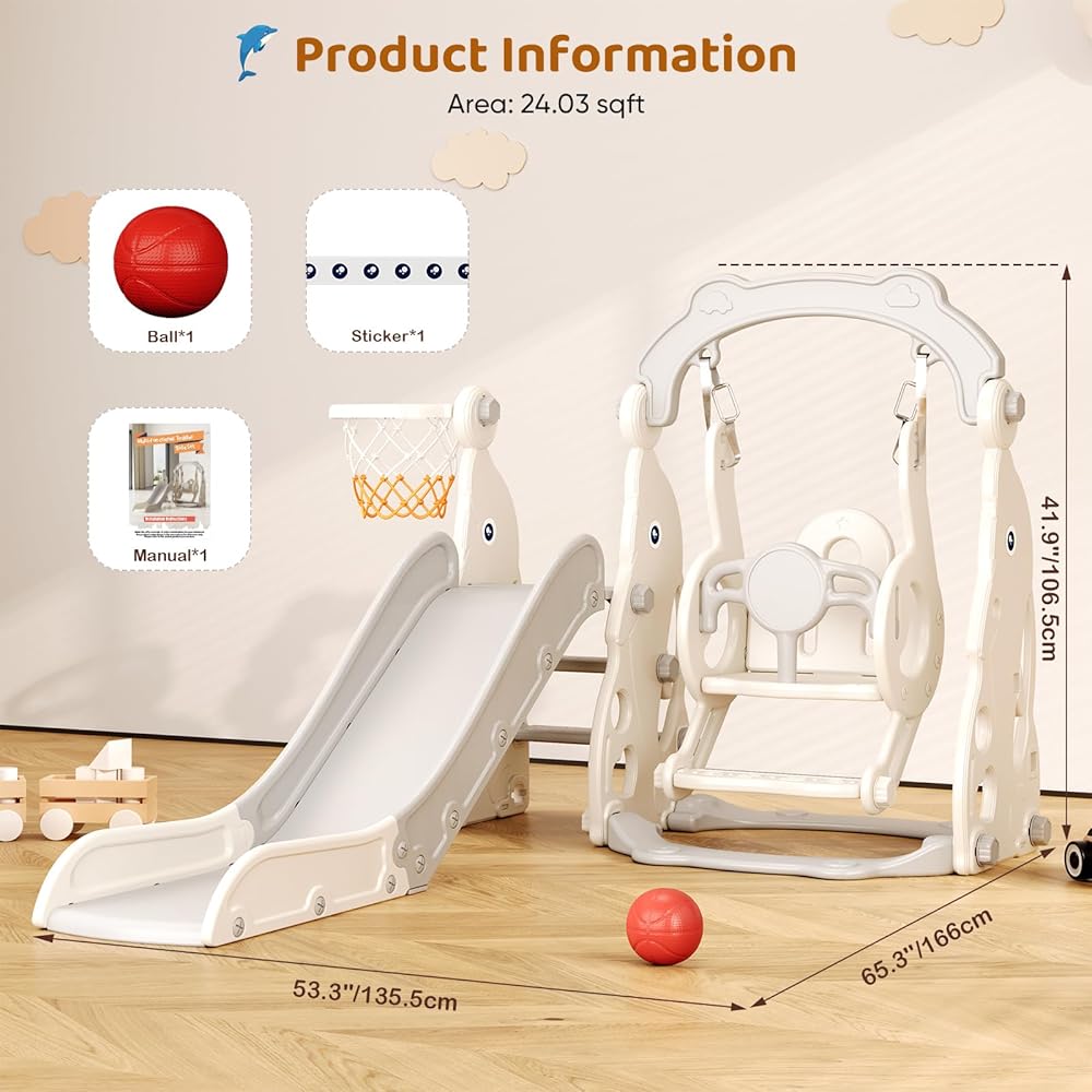 ✅【Tips】:This toddler slide playground set is suitable for kids age 12 months +. The slide is a big toy and can be used both indoor and outdoor. Please check our product size information carefully before purchasing. Our package contains product installation instructions and installation accessories, please check carefully after receiving the goods. If you have any other questions, please contact us in time. Thank you!
