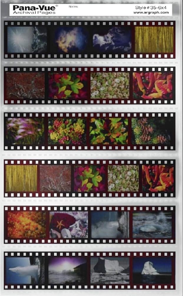 Pana-Vue Archival Negative Pages for 35mm. Each page holds 24 Frames (6 Strips of 4 Frames). 100 Pack