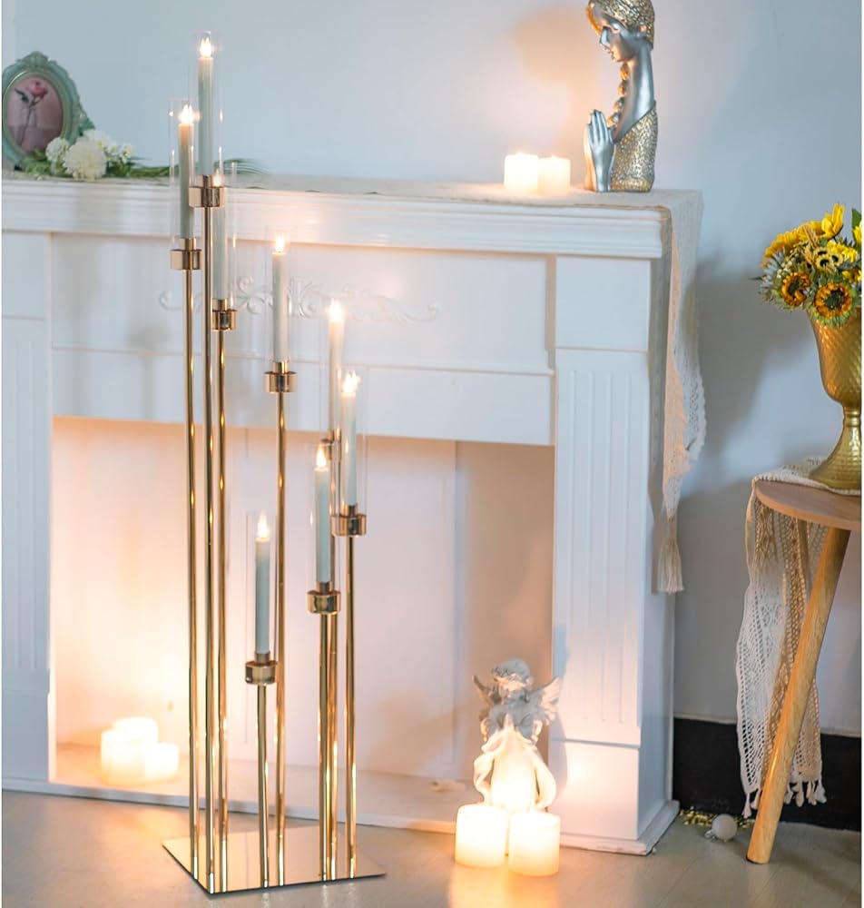 Sturdy Metal Made:These candle holder are made of sturdy metal materials. Each piece is carefully packaged to its original state, equipped with a gold base and acrylic lampshade covered with protective film, creating a perfect table centerpiece.