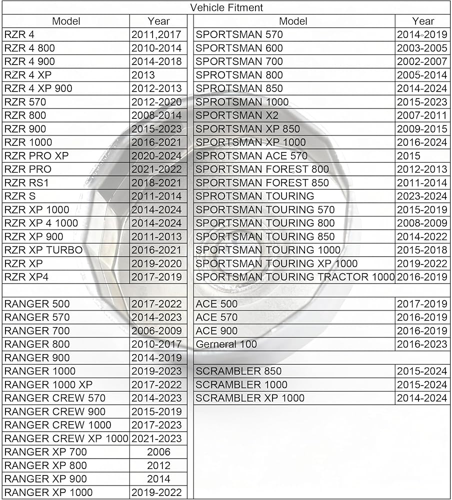 - Fits ACE 500/570 /900, Gerneral 1000, Ranger 500 570 700 800 900 1000/1000 XP, Ranger Crew 570 900 1000/XP 1000, Ranger XP 700 800 900 1000.