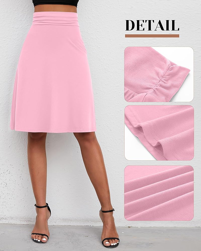 Designed with a Pleated High Waist, Flared and Knee Length: a combination of comfort and function, a simple yet stylish classic women's casual skirt; The waist can be folded down, and the skirt can be shortened easily; The flared design brings beauty flow to fit any body shape, knee length for casual or formal events like church