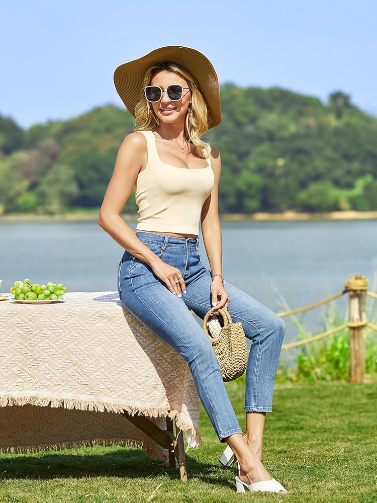 MATCHING: Seamless crop tank is great for layering or just wearing on its own as a going out top, easily pairing with jeans, skirt, shorts, legging or layering under shirts, blazers, jackets, coats or cardigans