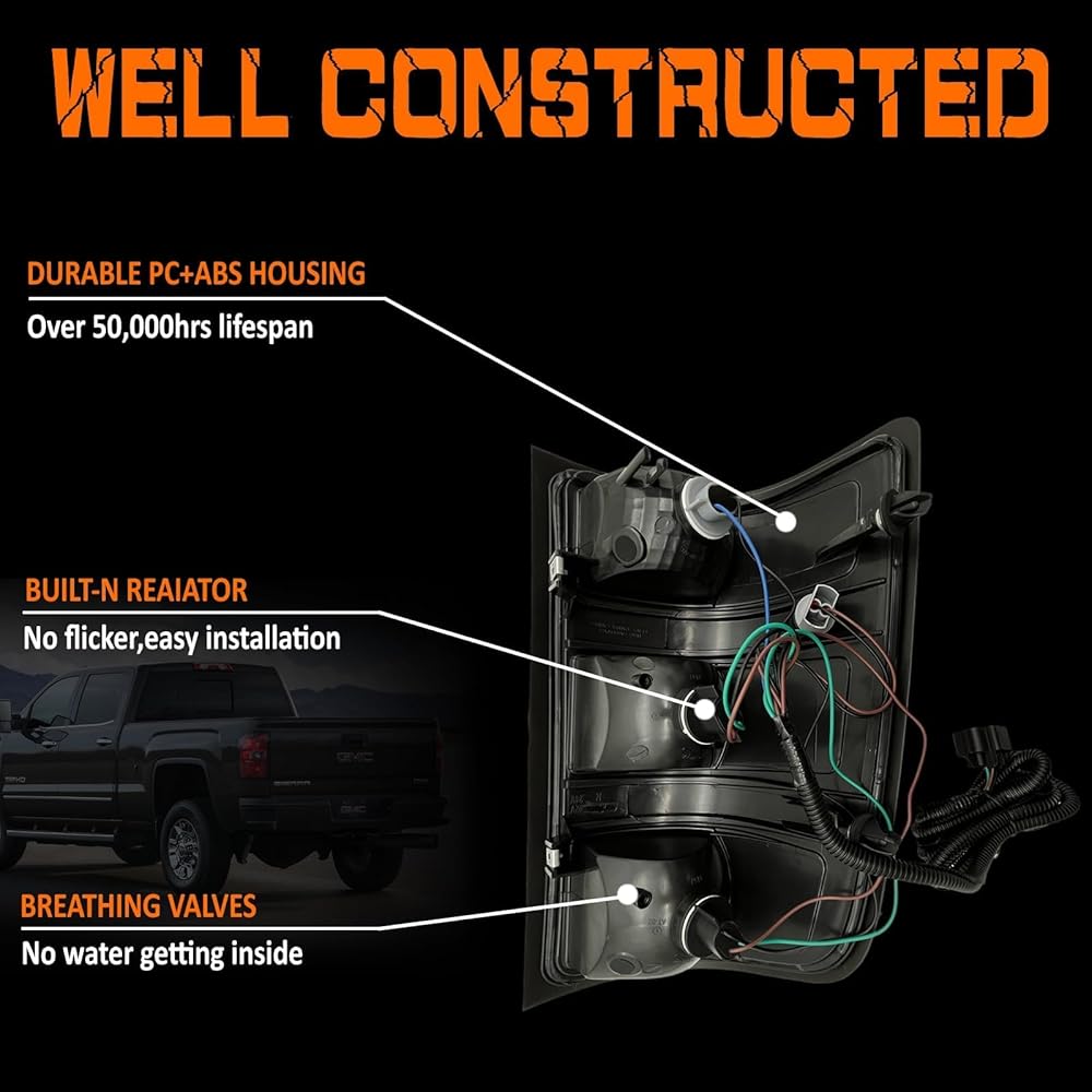 Fitment: Tail lights rear lights compatible with 2007 2008 2009 2010 2011 2012 2013 gmc sierra 1500 2500hd 3500hd