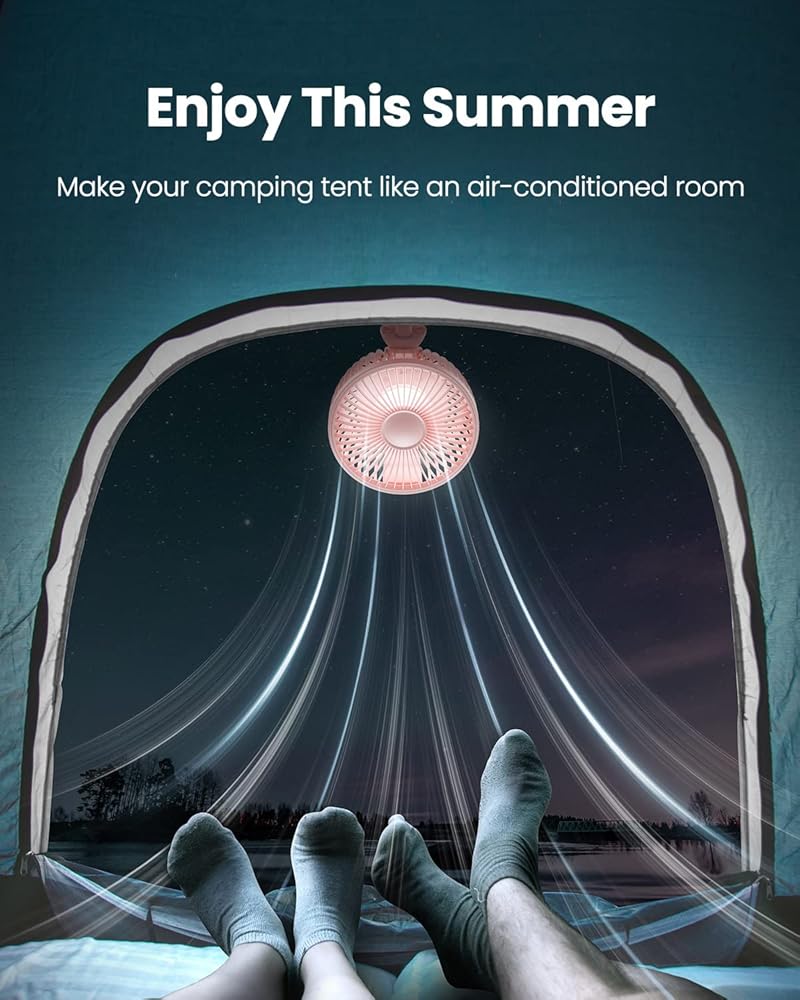 𝟒𝟓° 𝐎𝐬𝐜𝐢𝐥𝐥𝐚𝐭𝐢𝐧𝐠 𝐅𝐚𝐧 𝐰𝐢𝐭𝐡 𝟏𝟐 𝐋𝐄𝐃𝐬: One button to control oscillating and light. 45° oscillating and 𝟑𝟔𝟎° horizontal 𝐫𝐨𝐭𝐚𝐭𝐢𝐨𝐧 to avoid blowing the head for a long time. Personal fan with 12 LEDs is a nice when camping, at night and even the power goes out