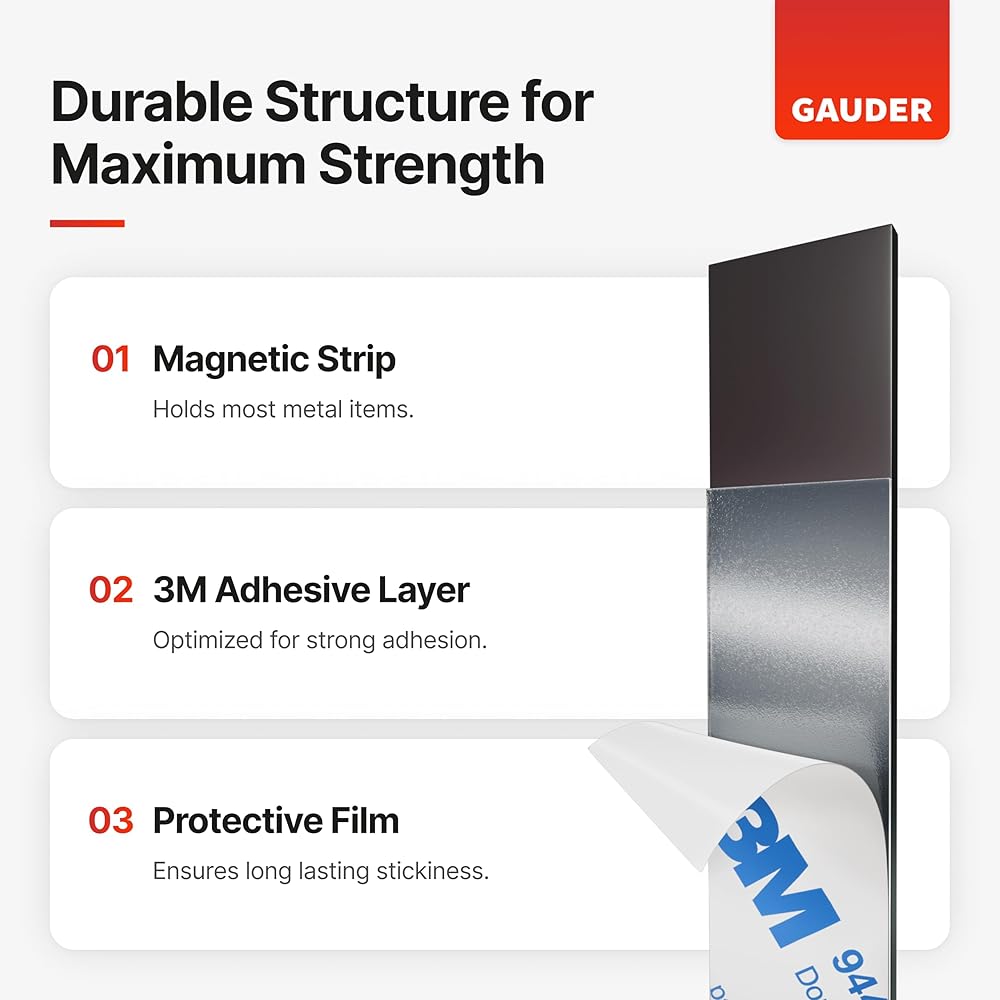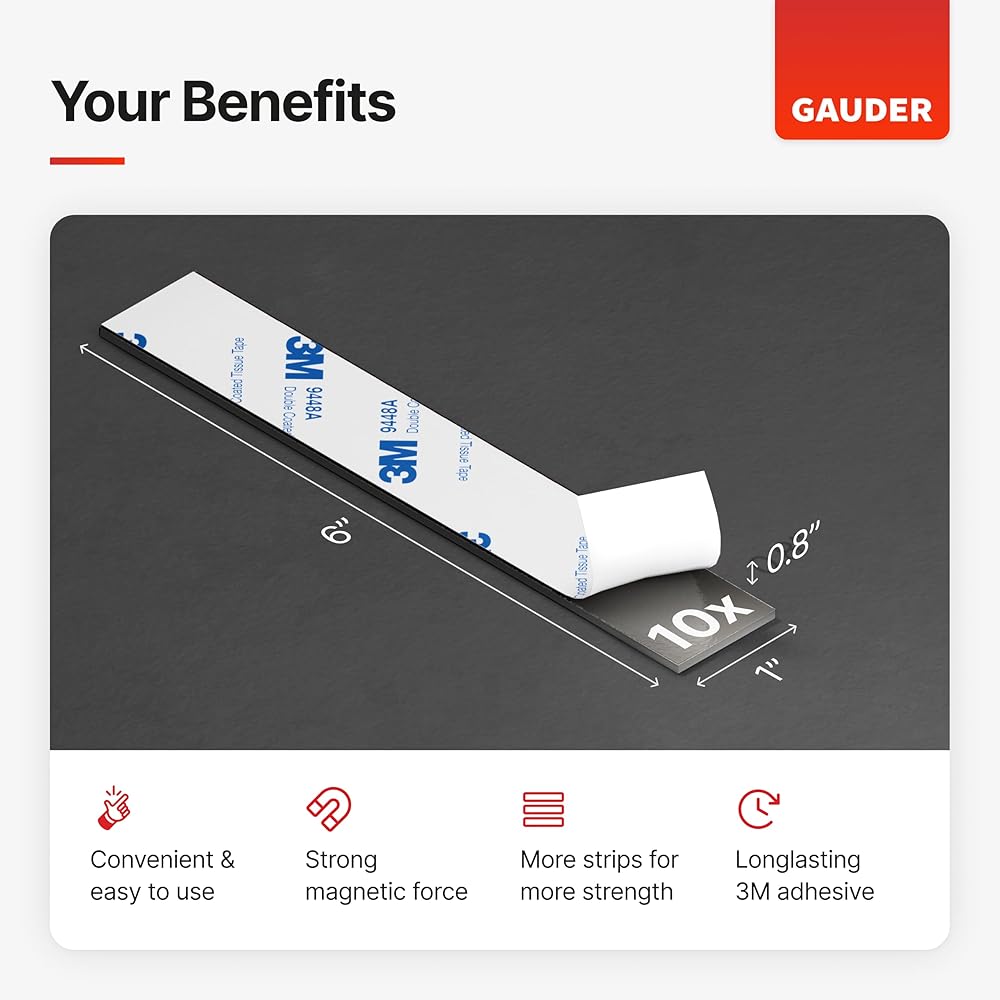 Since our magnet strips are self-adhesive, you can attach them to many surfaces and still be sure that they will hold perfectly thanks to the reliable 3M adhesive. Decide for yourself whether you prefer to use thicker or thinner magnetic strips — You can get our GAUDER magnetic strips in a variety of sizes.