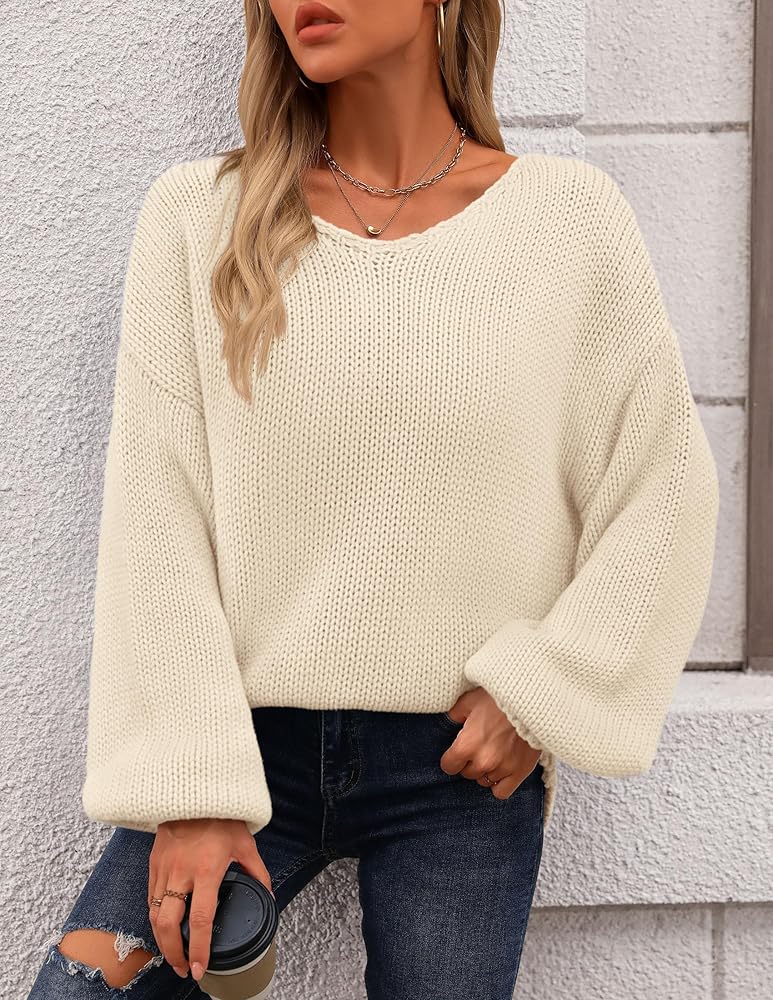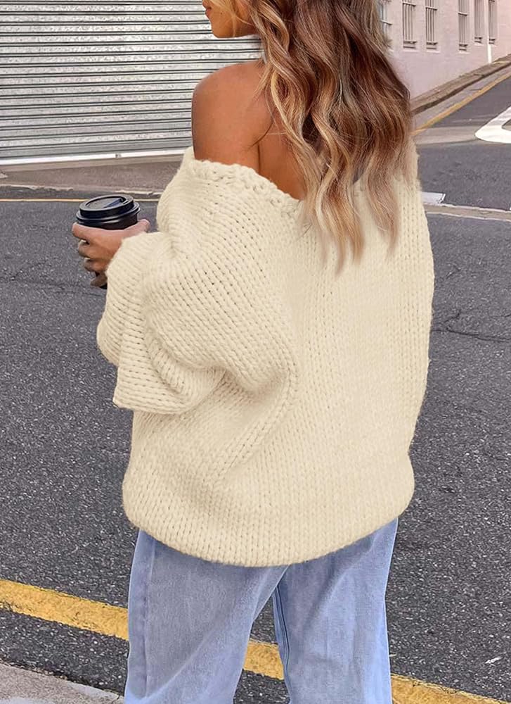FEATURES: Oversized Sweaters For Women/ Womens Long Sleeve Tops/ Chunky Knit Pullover Sweater/ Womens Blouses Dressy Casual/ V Neck Sweater Women/ Drop Shoulder Sweaters For Women Trendy/ Loose Fitting Tops For Women/ Womens Winter Tops/ Solid Color Warm Going Out Tops