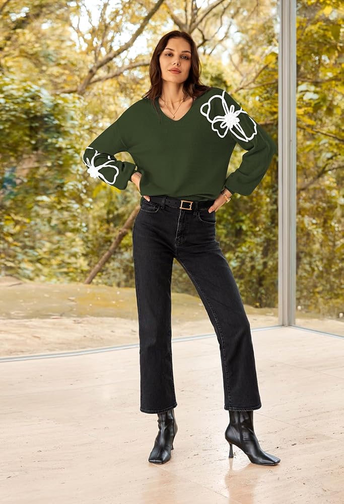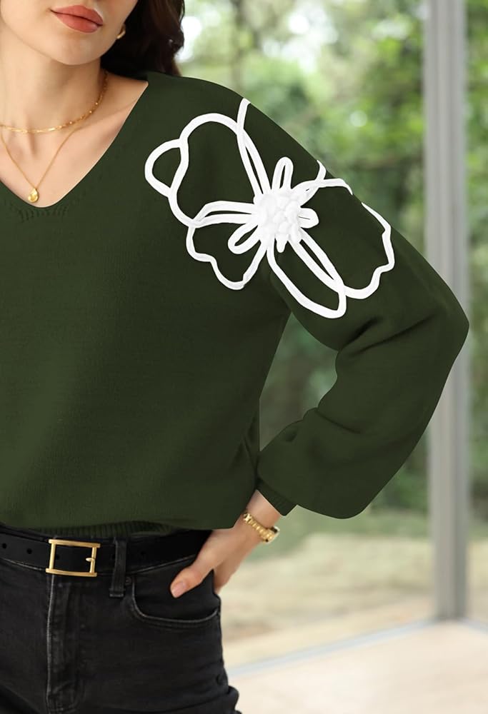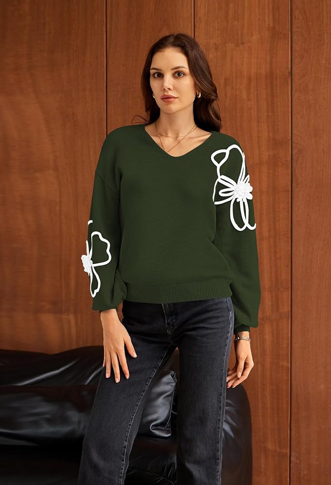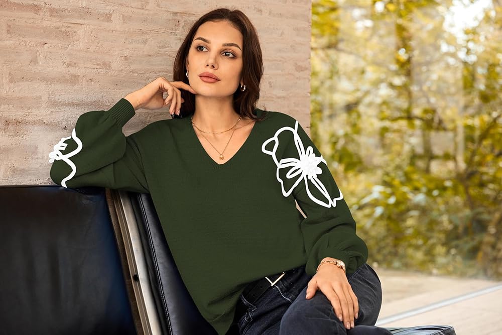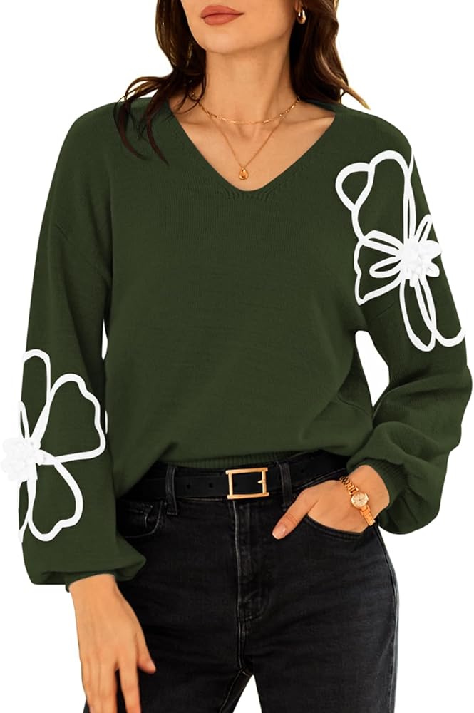 - Design: This Pullover Tops feature long sleeve V-Neck and knit floral designs that can be worn alone and with a coat, jacket, jeans, and leggings.