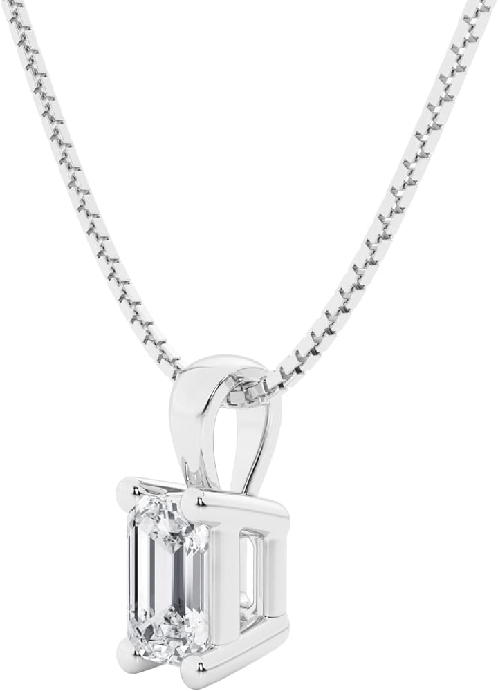 Diamond Solitaire Pendant: Make a favorable impression with this chic diamond pendant. Crafted in 14K white gold, this dazzling design showcases a sparkling 3.00 ct. certified princess-cut diamond solitaire - boasting a color rank of E-F and clarity of VS in a four-prong setting. Buffed to a brilliant luster, this perfect pendant suspends along an 18.0-inch box chain that secures with a spring ring clasp.