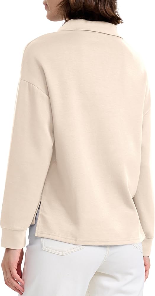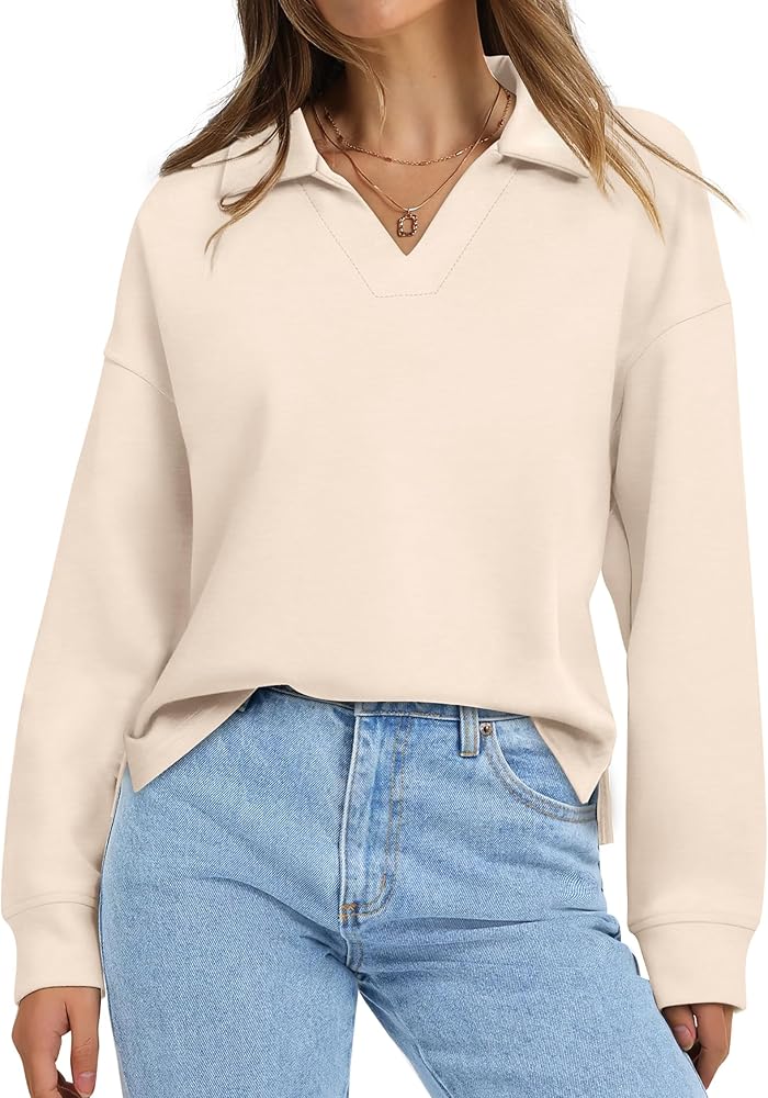Design: Featuring a classic v-neck and long sleeves, this women's lightweight sweatshirt offers a blend of elegance and comfort, making it a versatile addition to your wardrobe.