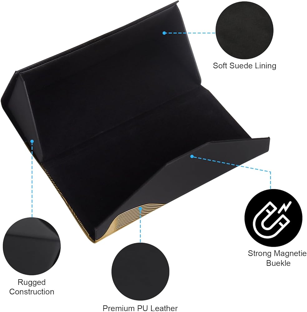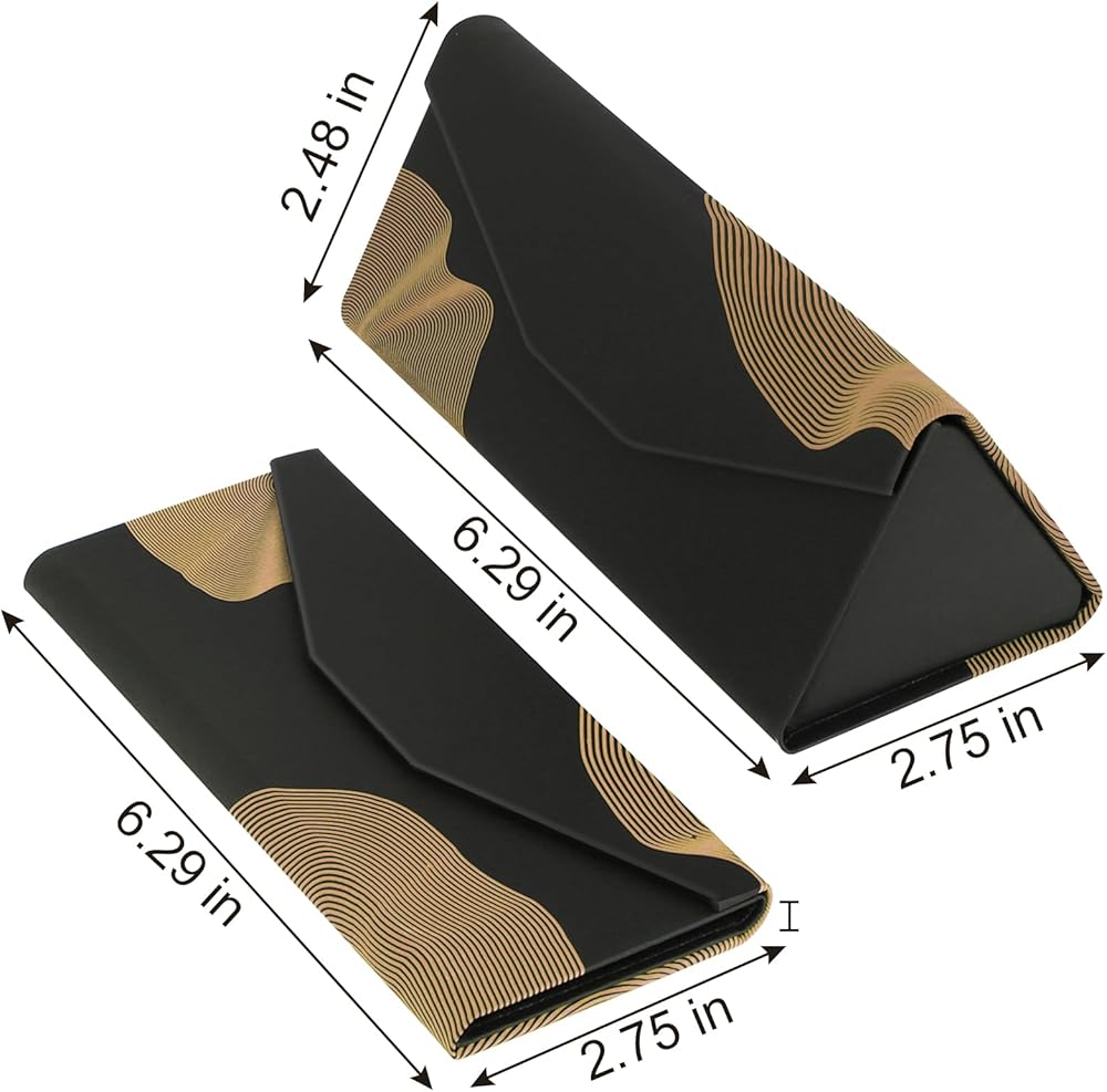 Magnetic Folding: Hard glasses case with magnetic folding design.Easy to store, can be folded into one piece when not in use.The magnetic closure design keeps the glasses case securely closed,and is easy to open and close.Sunglass case can better protect your glasses.