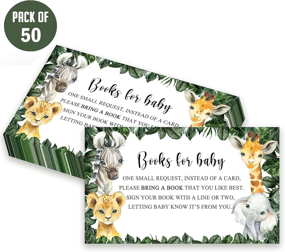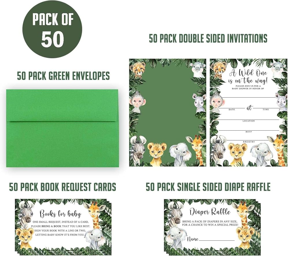 ❤ PACKAGE INCLUDES: Each pack Includes 50 double-sided invitations, 50 envelopes, 50 diaper raffle, 50 book request cards.