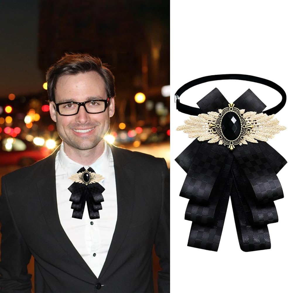 Pre-Tied Bowties Easy to Wear: This ribbon bow tie has an adjustable elastic band so you can adjust it to fit neck size; The shape won't loosen with long time wearing, suitable for creating a perfect first impression; (Pin not included)