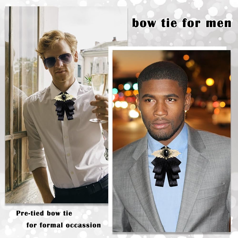 Satin Men's Bow Tie: Men's bow tie is made of soft polyester, with layers of ribbons that naturally hang down and a sparkling zirconia; This exquisite bow tie show more gentlemanly statement than regular model