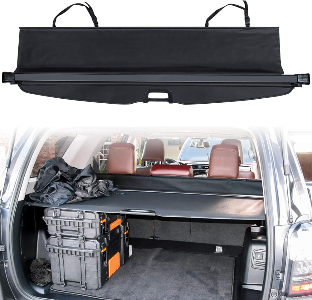 Custom Fit — Perfectly fit for Toyota 4runner 2010 2011 2012 2013 2014 2015 2016 2017 2018 2019 2020 2021 2022 2023 2024. Hides your valuables and privacy under the cargo cover for peace of mind after parking.