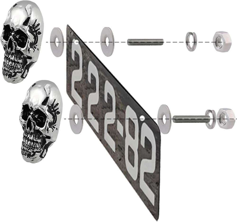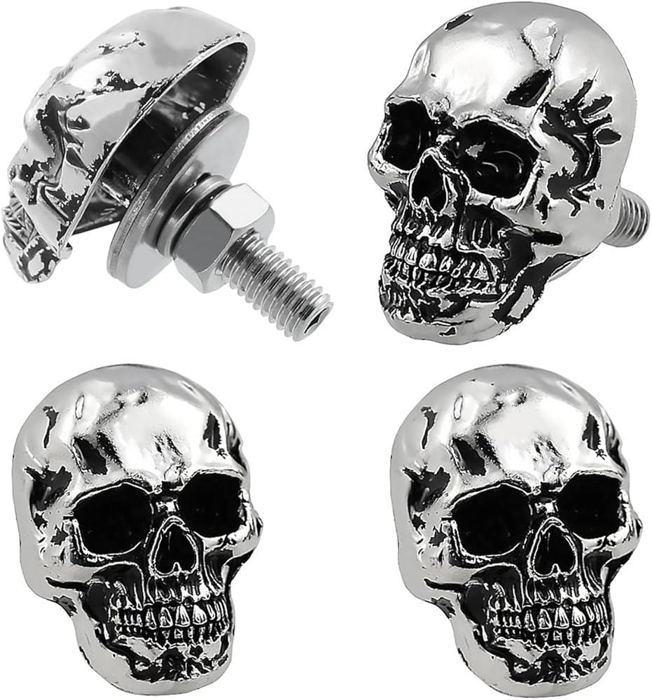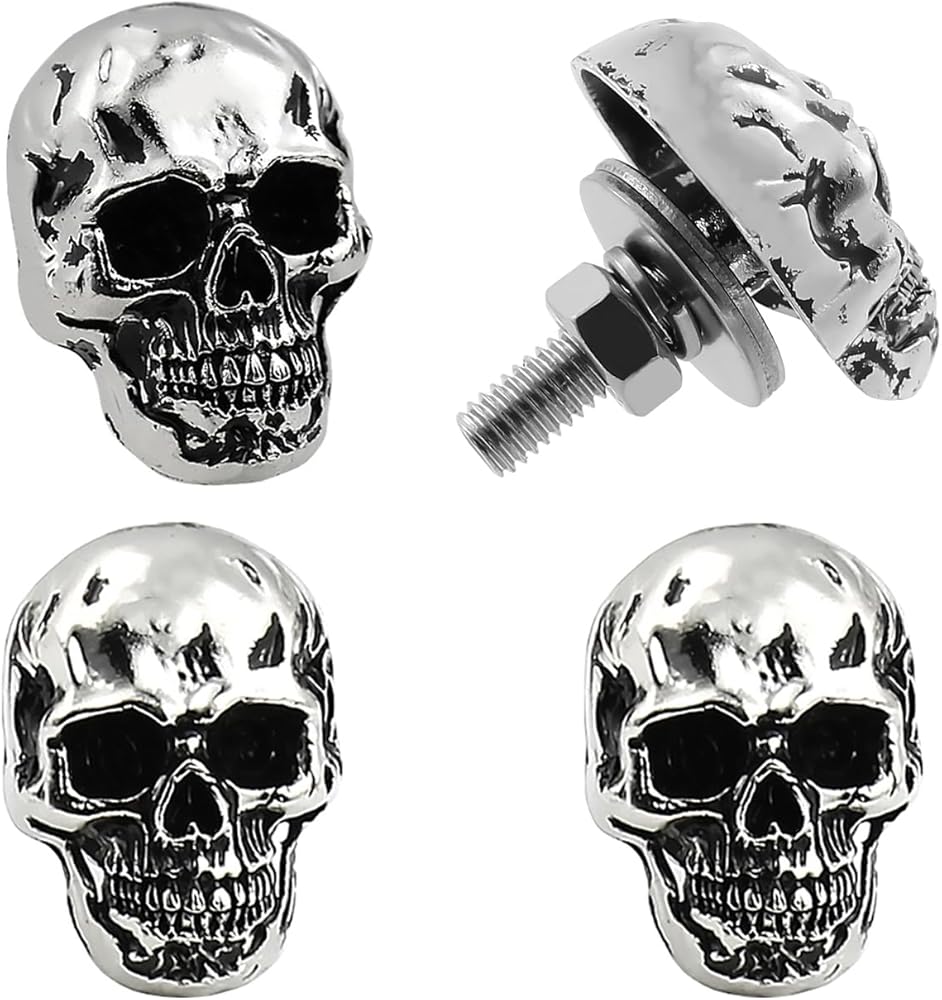 Skull license plate screws universal fit most car truck motorcycle vehicles.