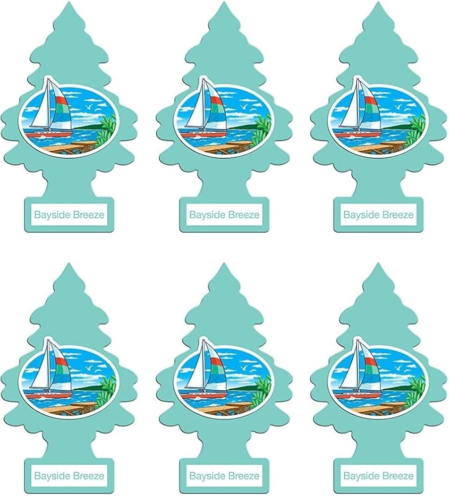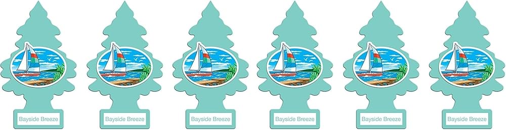 Little Trees Cardboard Hanging Car, Home & Office Air Freshener, Bayside Breeze (Pack of 6)
