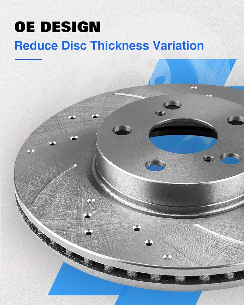Front Brake Pad and Rotor Kit Compatible with Select Kia and Hyundai Models, Sportage/Sonata 05-10, Optima 06-10, Tucson, Soul, Tiburon, Drilled Slotted Rotors Ceramic Brake Pad 11 inch(280mm)