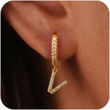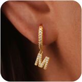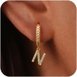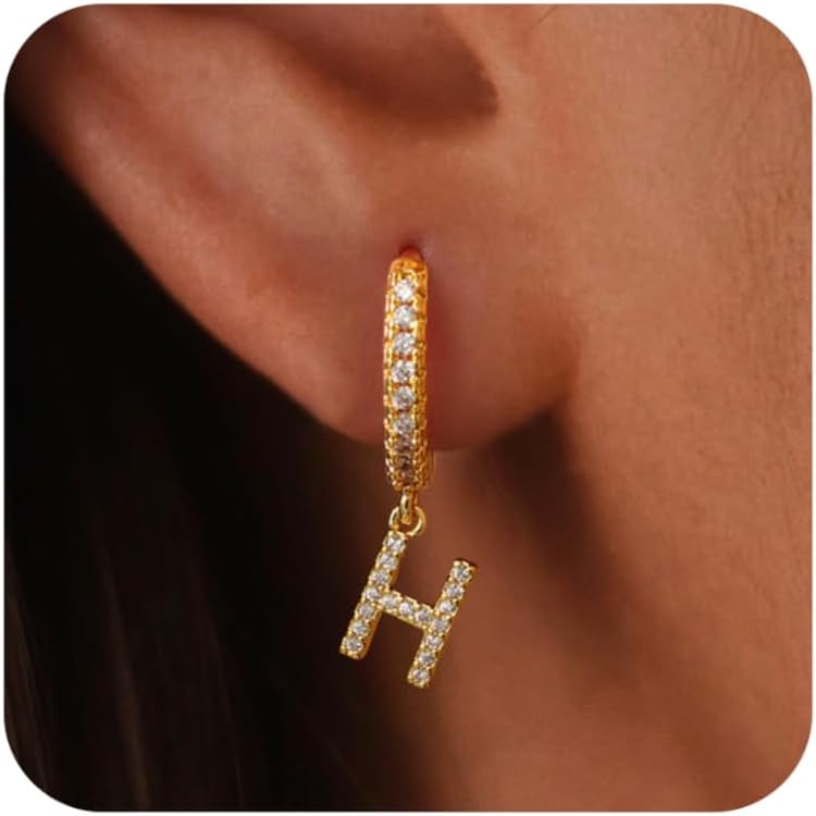 INITIAL EARRINGS: Pair of letter initial earrings for girls women, handcrafted small huggie hoop earrings with pave cubic zirconia, sparkle and elegant, perfect for every day and night wear