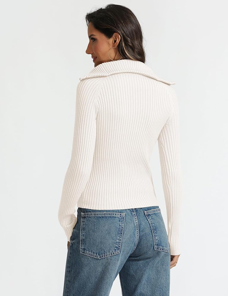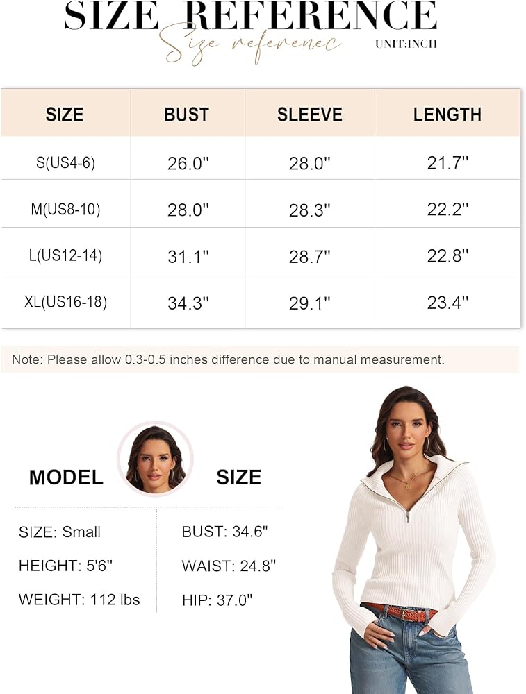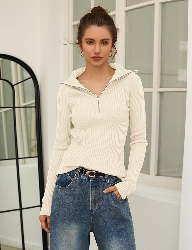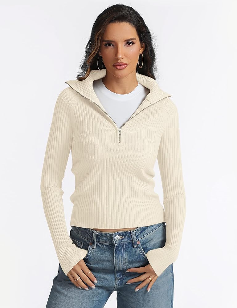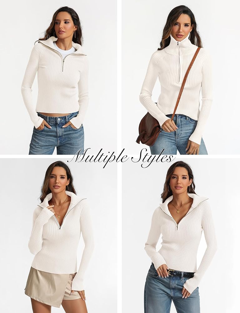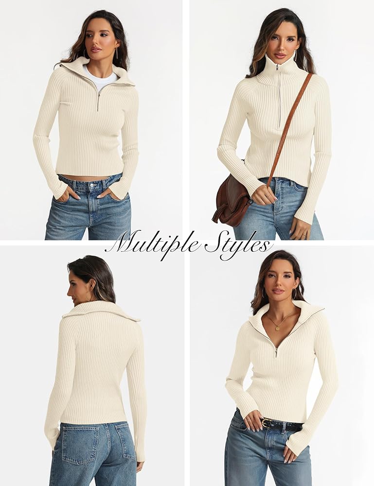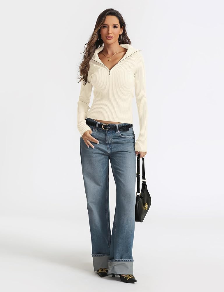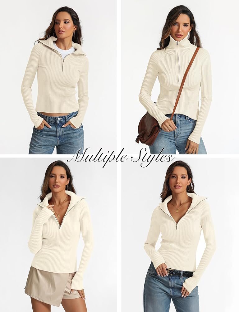 STYLISH DESIGN: The pullover sweater features wide ribbed knit texture, high quality YKK zipper, longer sleeves, crop length, slim fit, classic and trendy. The half zipper design allows you to wear it as a collared v neck sweater or turtleneck jumper top for different styles.