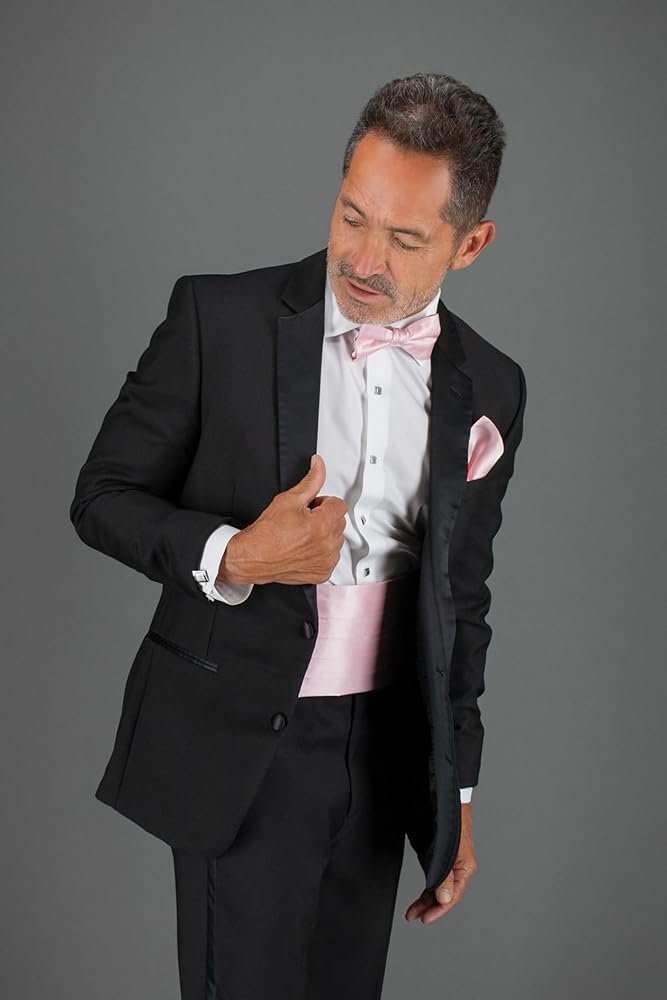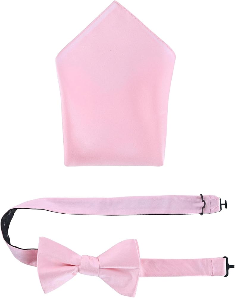 - Bow tie adjusts 14 1/2 to 20 inches and the pocket square measures 13 x 13 inches