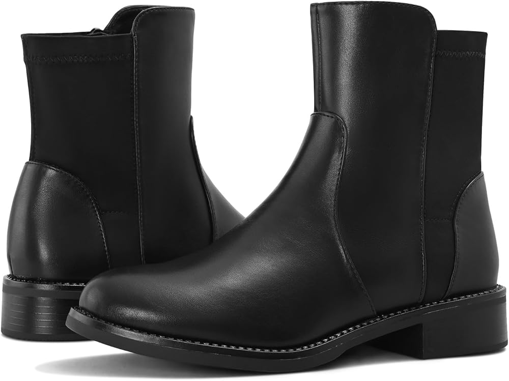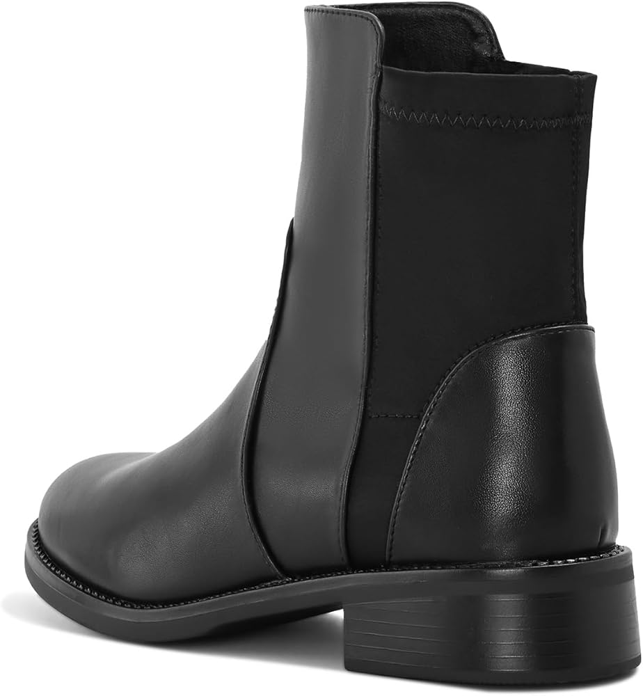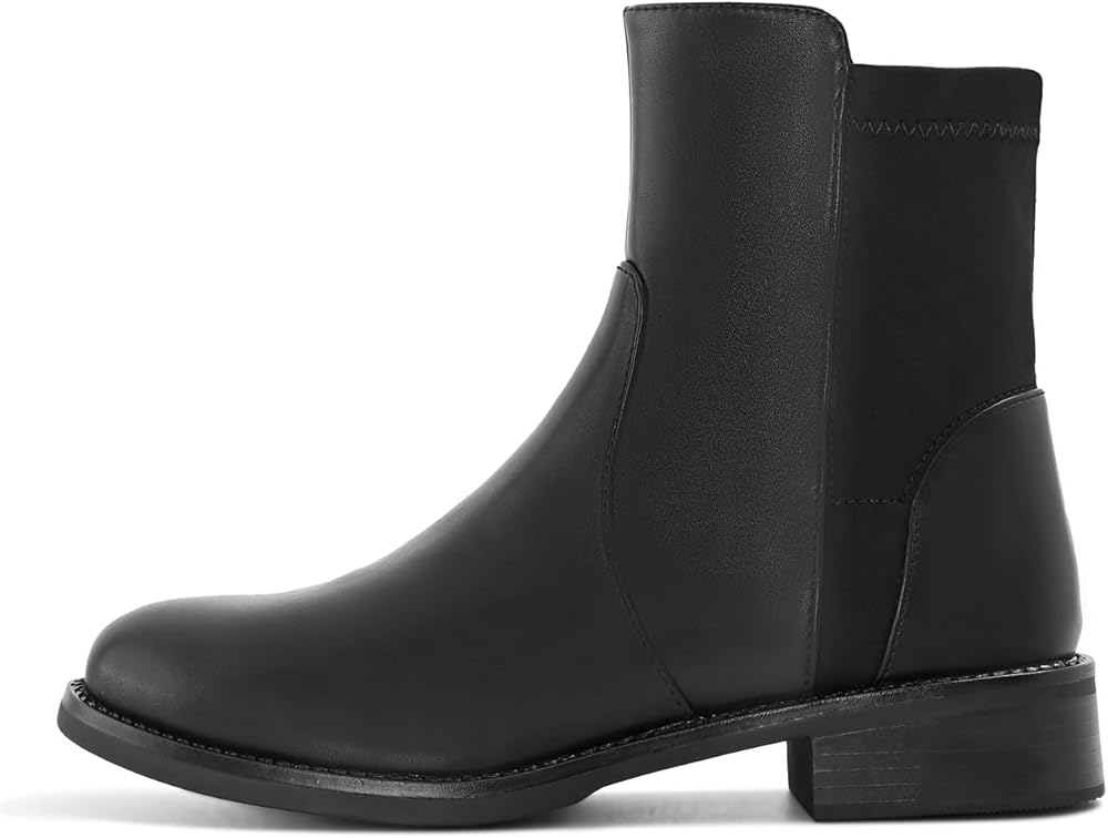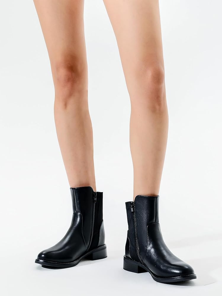 Shoe'N Tale Ankle Boots for Women Low Chunky Round Toe Short Boots Block Heel Booties Side Zipper