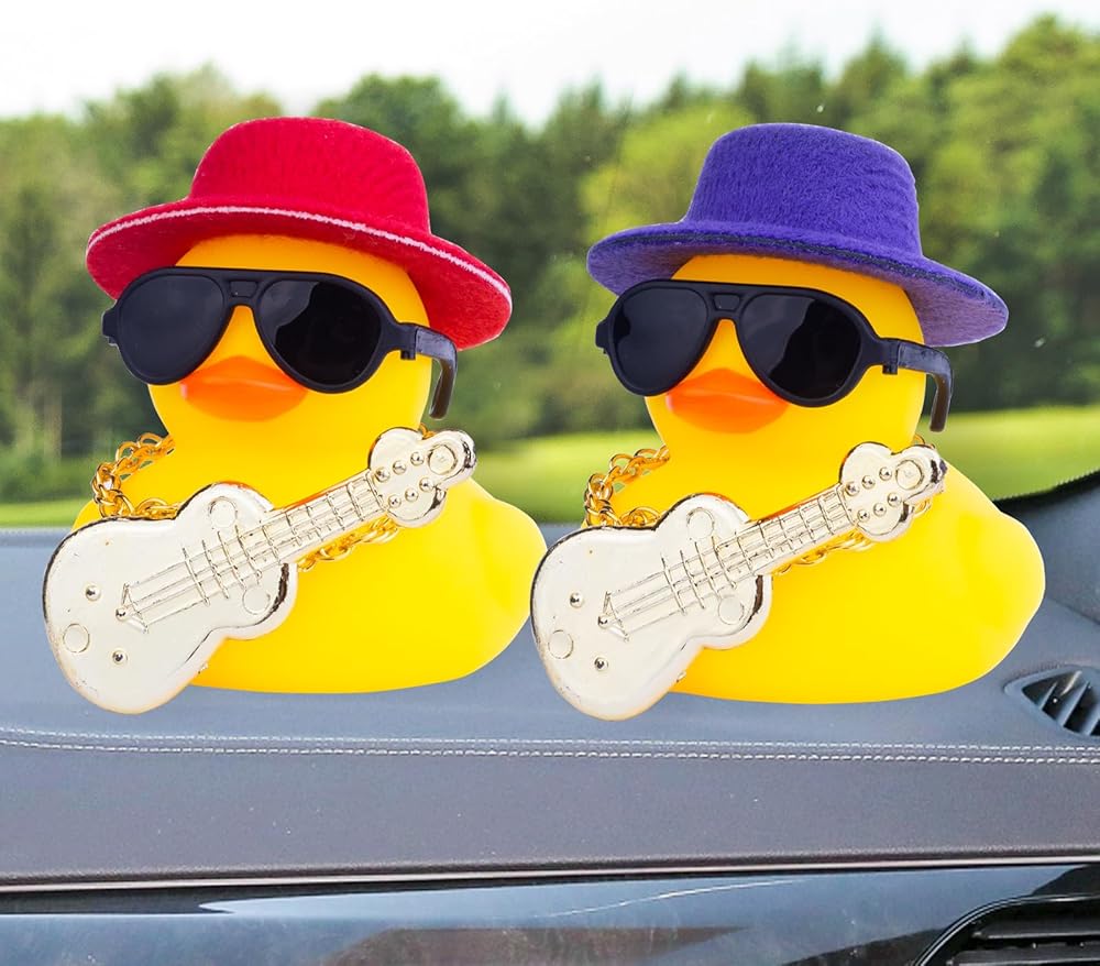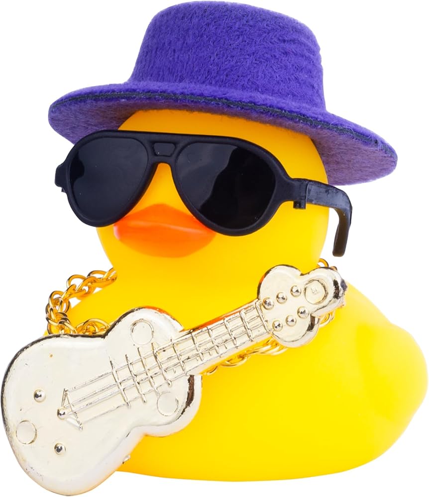 MuMyer Car Rubber Duck Decoration with with Mini Top Hat Guitar Sunglasses Necklace