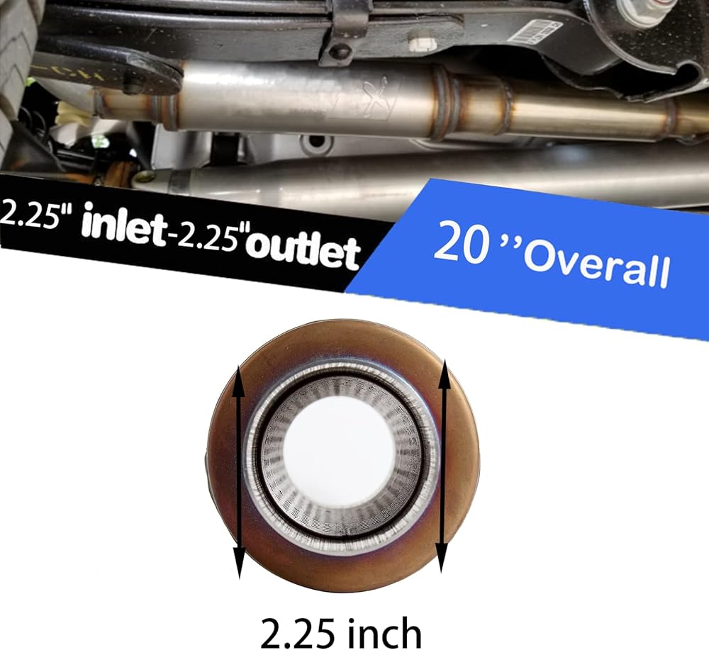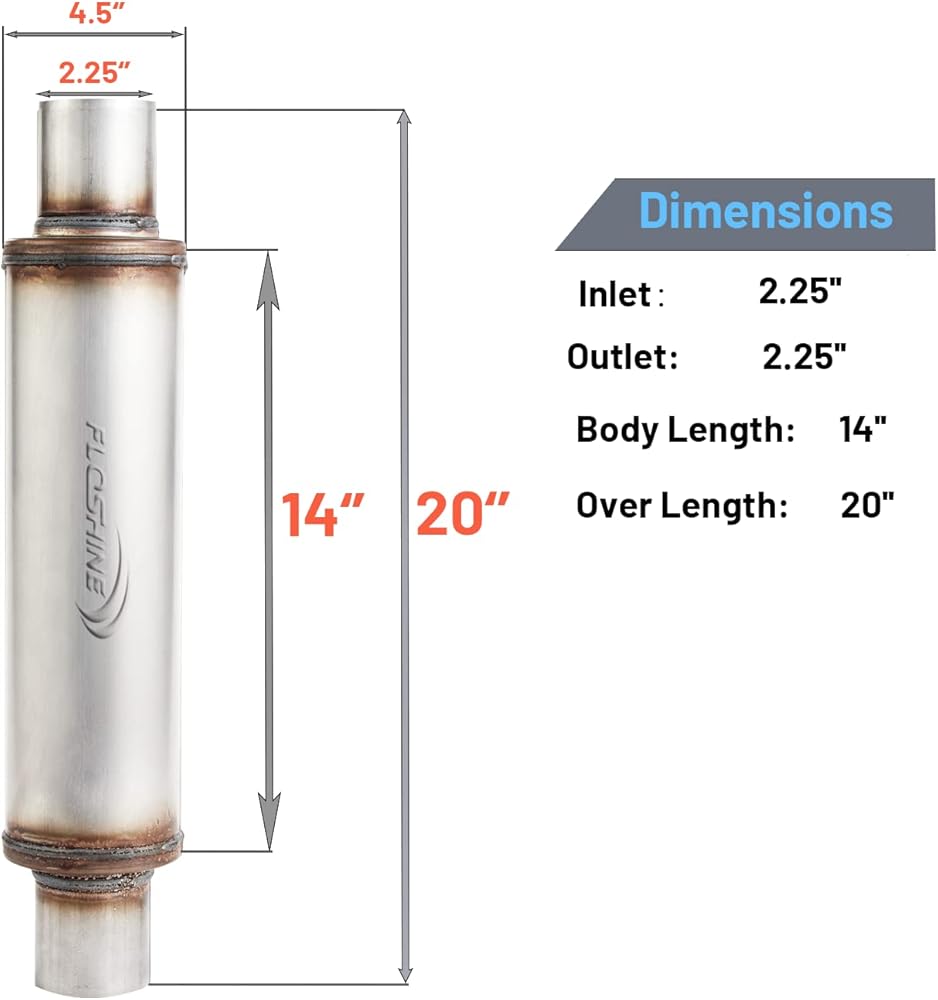 Floshine 2.5 inch muffler are built with 409 stainless steel and all joints are 100% welded to ensure a stable internal structure.