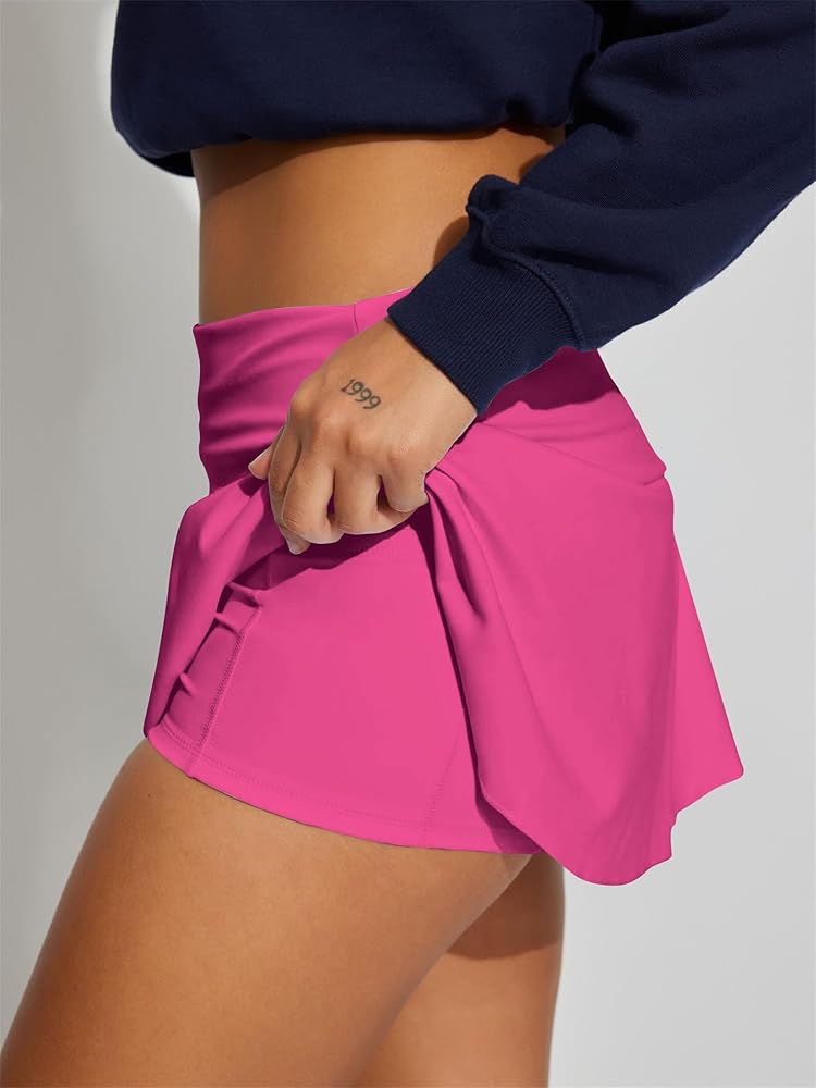 Cute Design: Fitted sexy flowy ruched flare mini skorts features a low rise fit, foldover elasticated waistband, attached mini shorts underneath and pocekts.