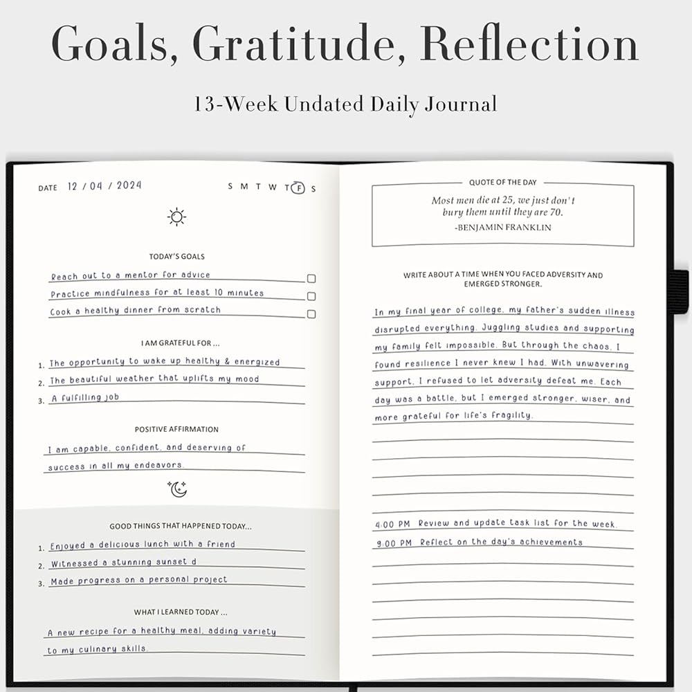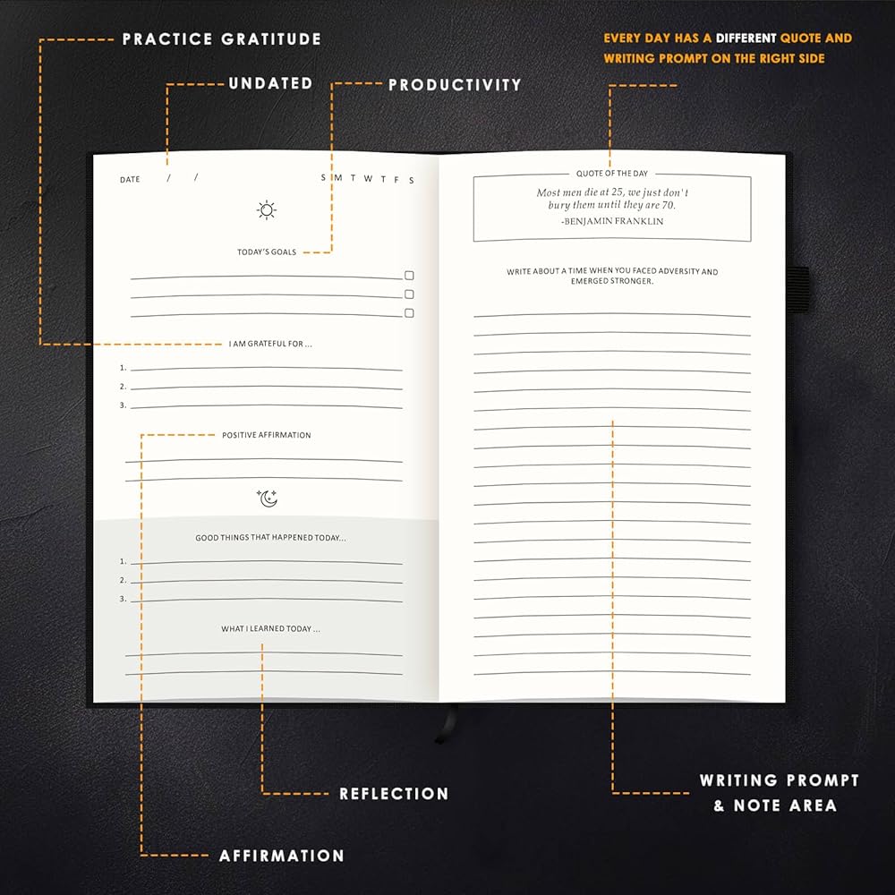 دفع التقدم الشخصي: ابق متمسكًا بتطلعاتك وقم بتحفيز دوافعك من خلال مجلة تحسين الذات الخاصة بنا. صُممت هذه المجلة الذاتية الأفضل لسهولة الاستخدام، وهي تحافظ على تركيزك ودوافعك واستعدادك للنمو المستمر.