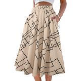 - Features: Elastic waist skirt for women, design with side pockets, midi length, solid color, flowy hem