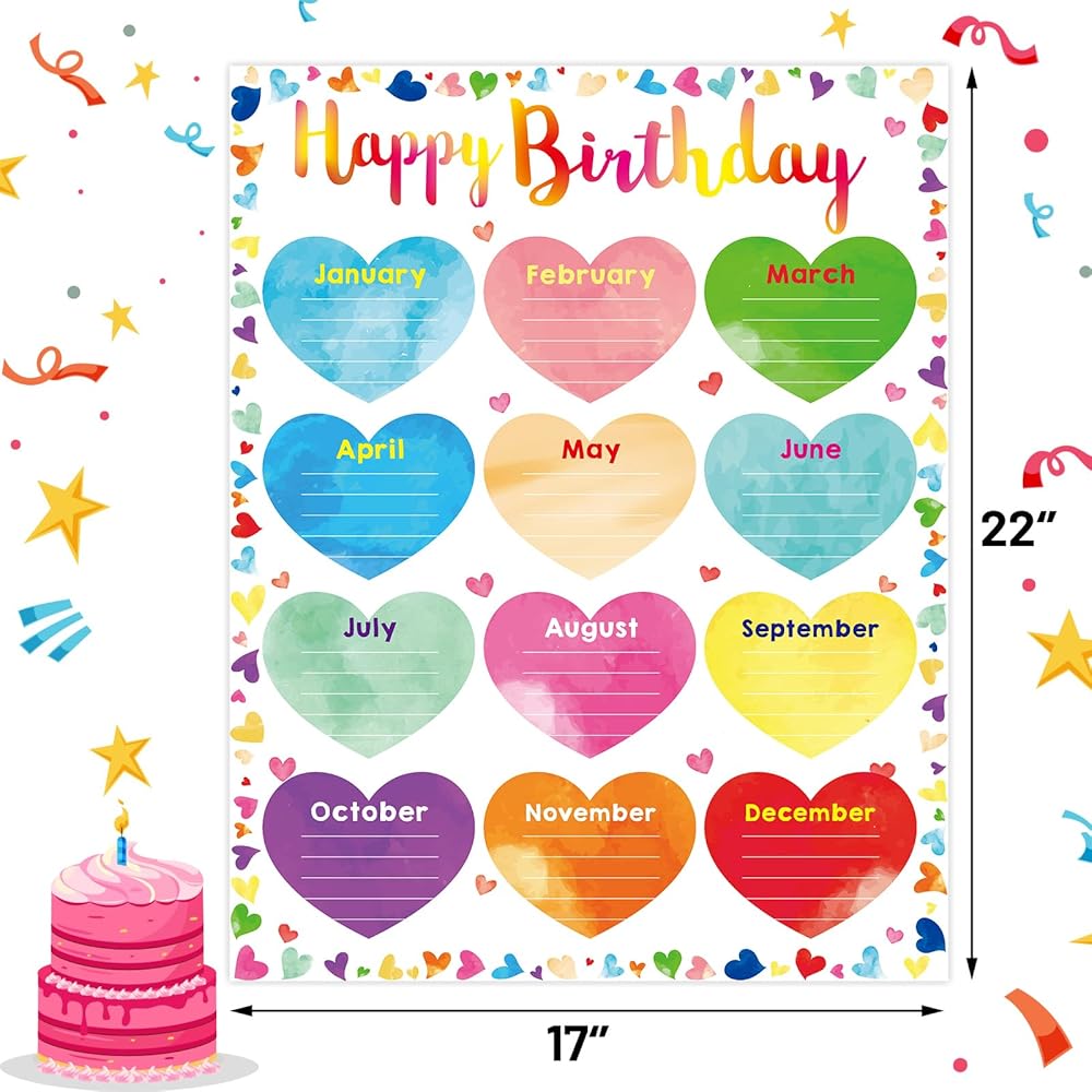 Great Classroom Supplies: Use the birthday chart poster to liven up the classroom, Stick it at the bulletin boards, windows, walls, or other class parts to add the lots of beauty