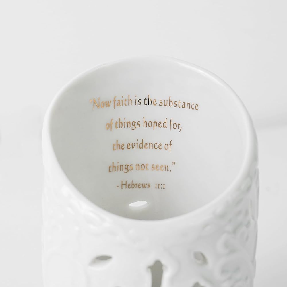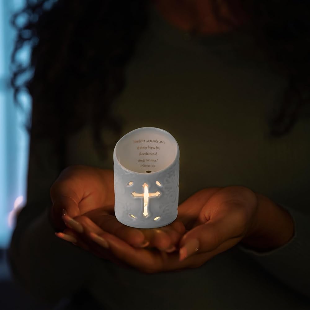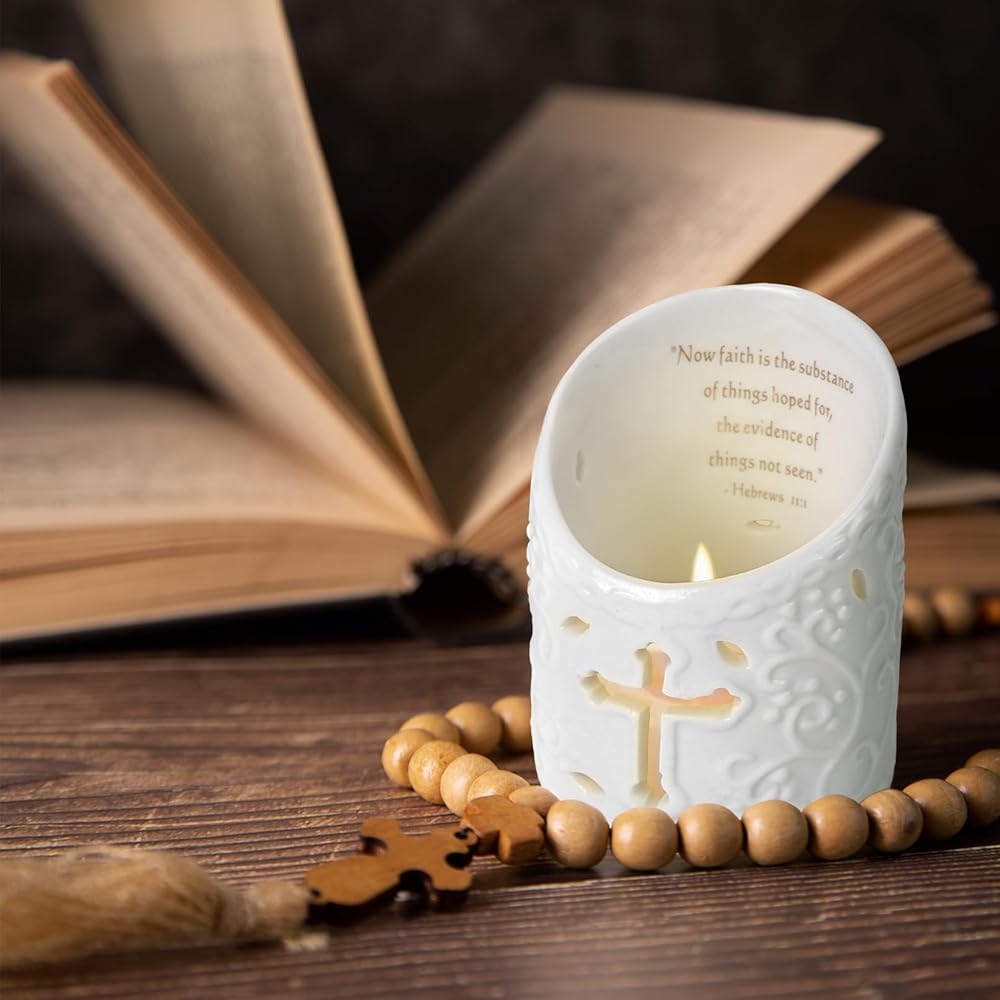 Traditional candle holder religious decorative tealight holder with bible verse “God is love, and he who abides in love abides in God, and God in him”, meaningful tea light holder to create a heartwarming atmosphere and remind us of love