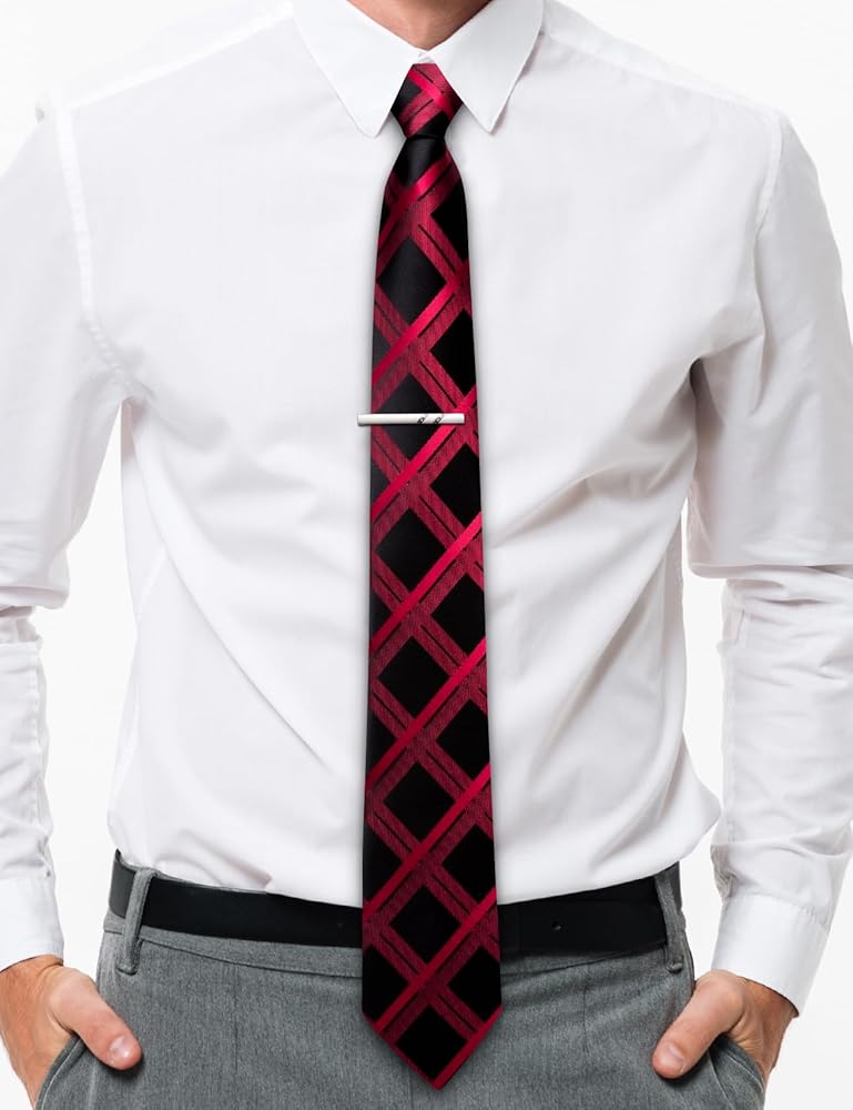 Extra Long - Zipper tie is 22in(55.8cm) long, 3.15in(8cm) wide, handkerchief 9*9in(23*23cm), cufflinks 0.55in(1.4cm), suitable for most men. Design men's classic plaid pattern with suits and shirts, let you receive compliments on any occasion. Best for daily wear, prom, business, wedding, office, formal meeting and other important moments.