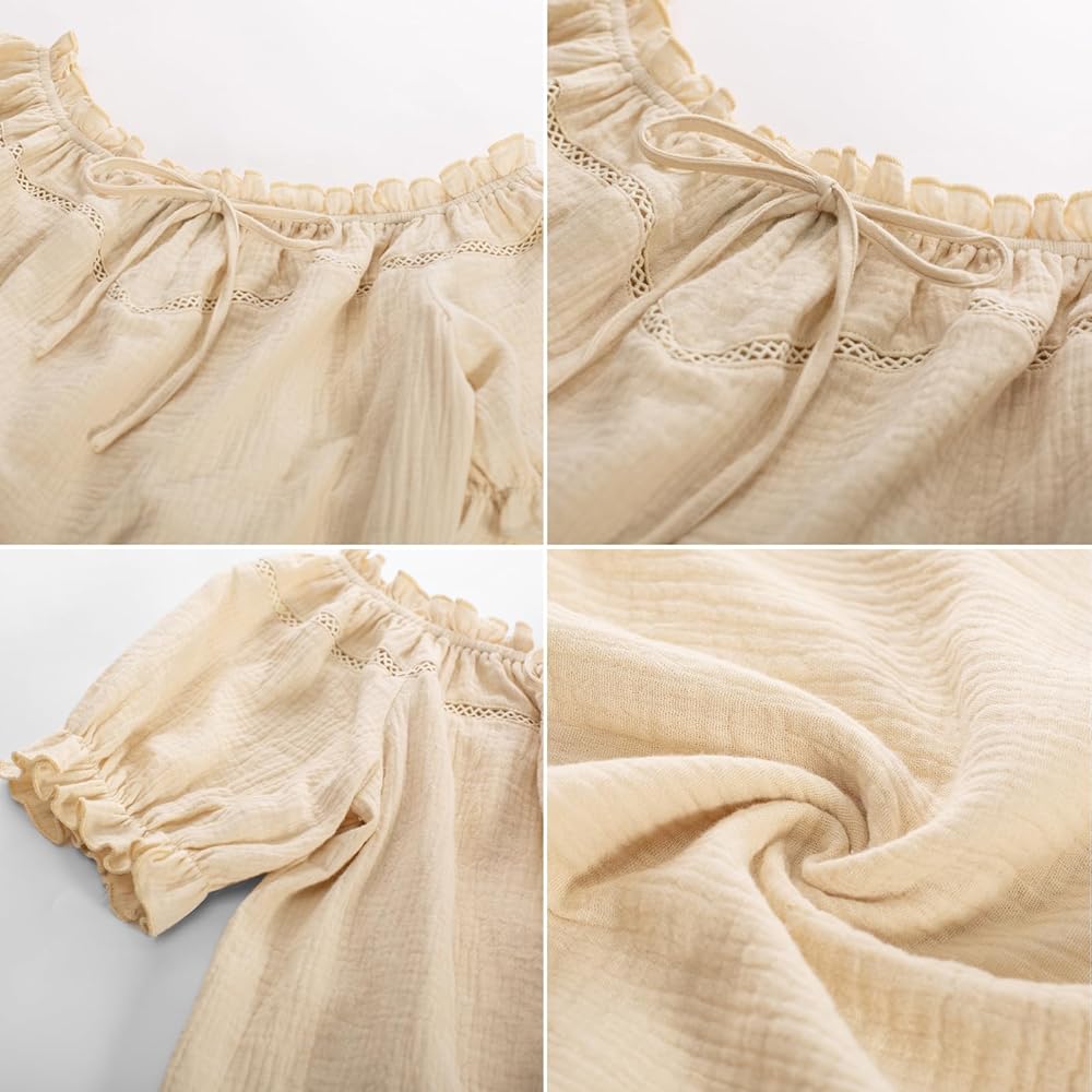 Features: Embrace the softness of cotton against your skin, while the off-shoulder design adds a touch of allure. The playful puff sleeves bring a hint of whimsy to elevate your style
