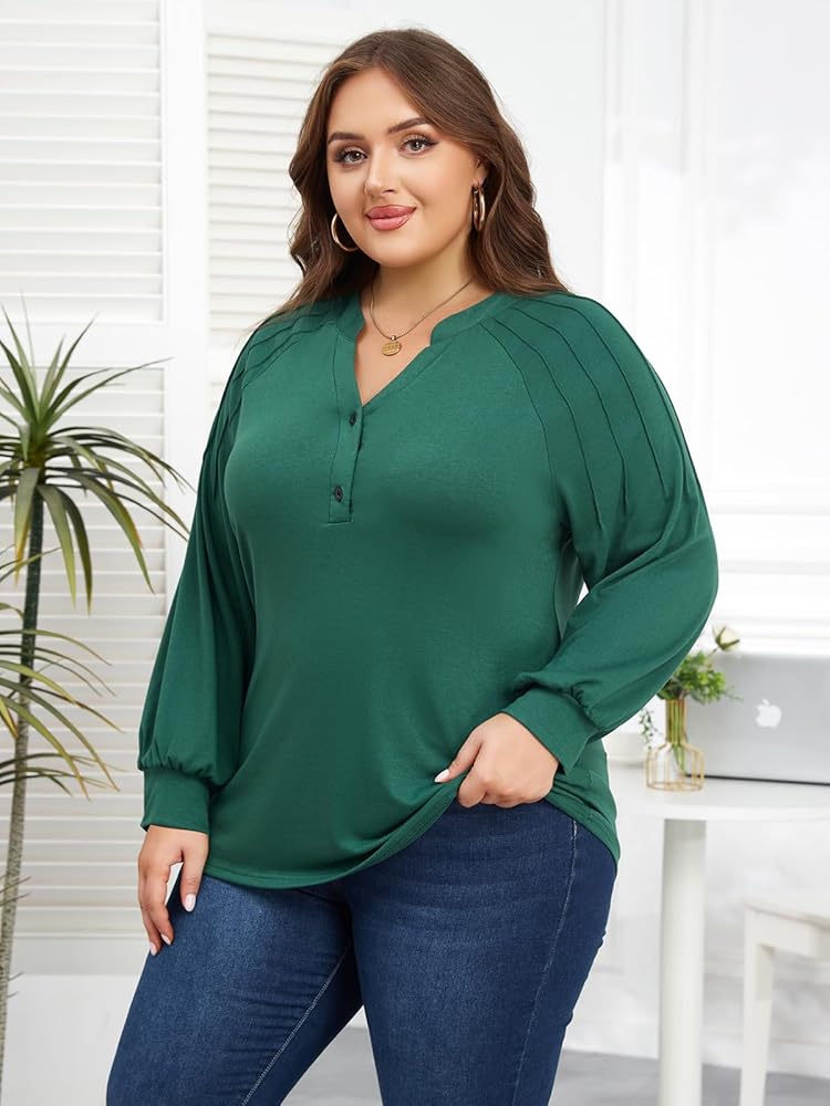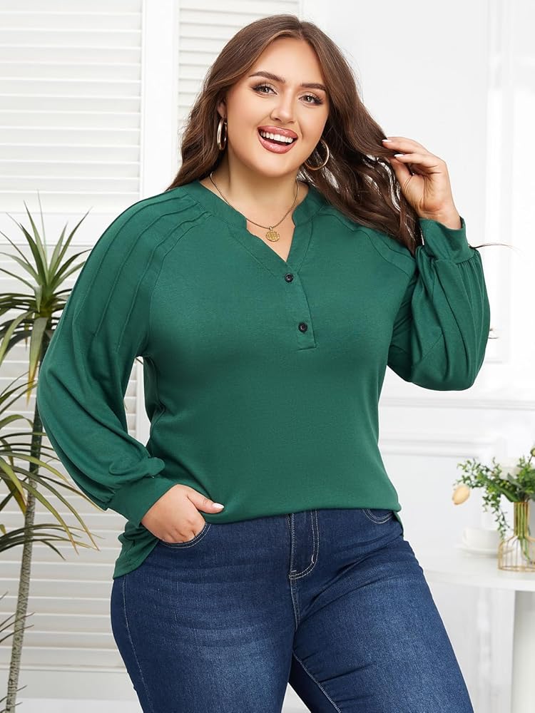 Features: Classic V-neck, button closure, lantern long sleeve, ruching at shoulders, curved hem, solid color, loose fit tunic tops, womens fall fashion tops.tunic tops to wear with leggings, cute and classy style, giving you a charming and trendy looking when you wear it.