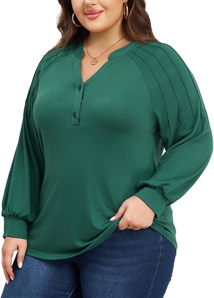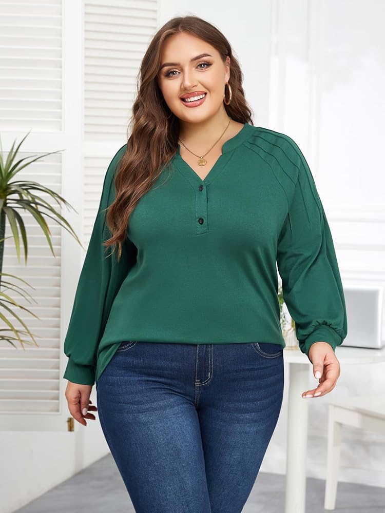Design: Classic V-neck and lantern sleeve design can well modify your neck and arms, make you look more slender and charming; Buttoned front to adjust v neck and comfortable to wear; a pleated shoulder design, adding a touch of sexiness, slimness, and elegance to this loose-fitting blouse shirts for women.
