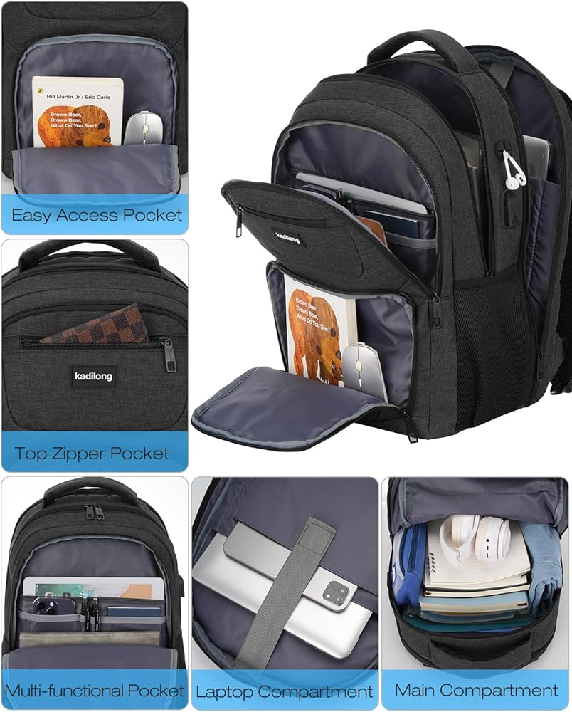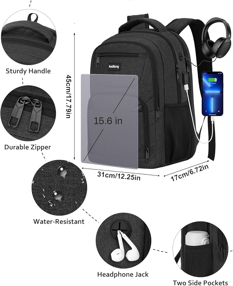 USB PORT&HEADPHONE HOLE: With built in USB charger and headphone hole design,this school computer backpack offers you a more convenient way to charge your phone and enjoy the music while walking. As a school backpack for men and women, high school college bookbag, computer knapsack.