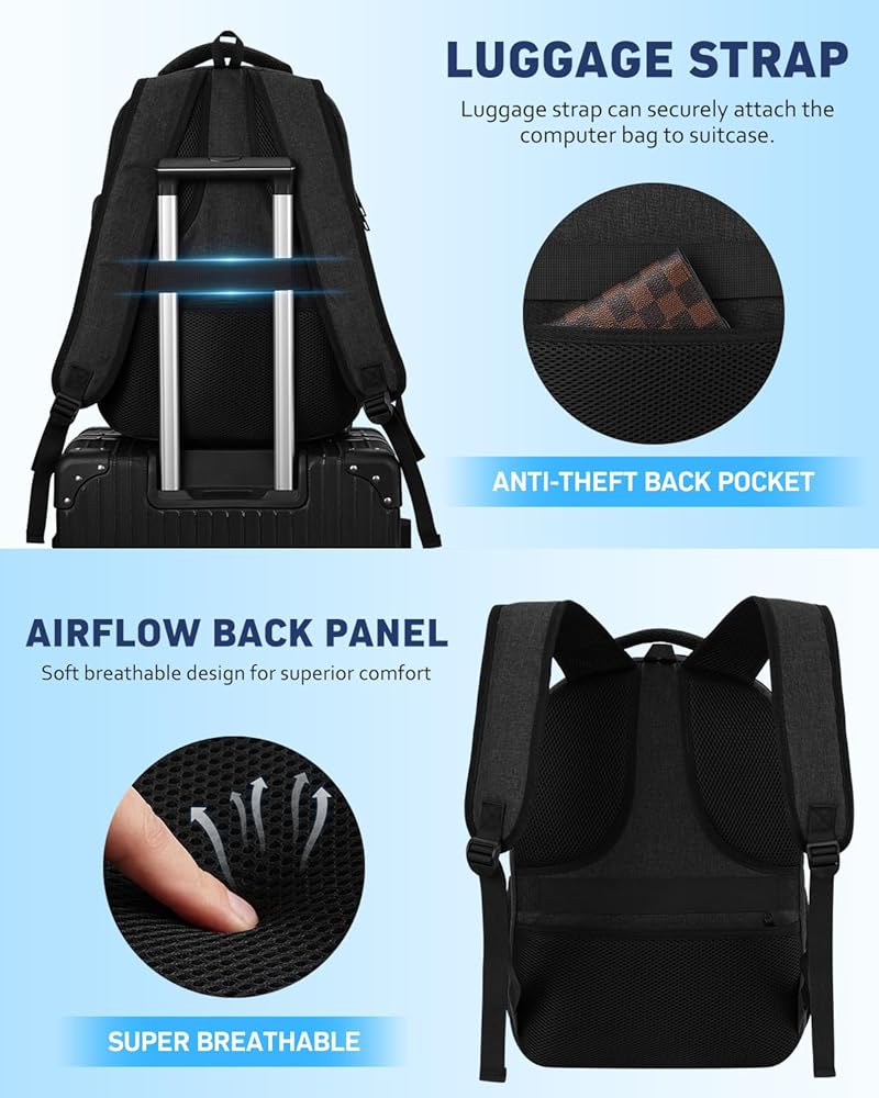 FUNCTIONAL&SAFE: A luggage strap allows backpack fit on luggage/suitcase, slide over the luggage upright handle tube for easier carrying. With a hidden anti theft pocket on the back protect your valuable items from thieves. making your journey and travelling more convenient wherever you go.