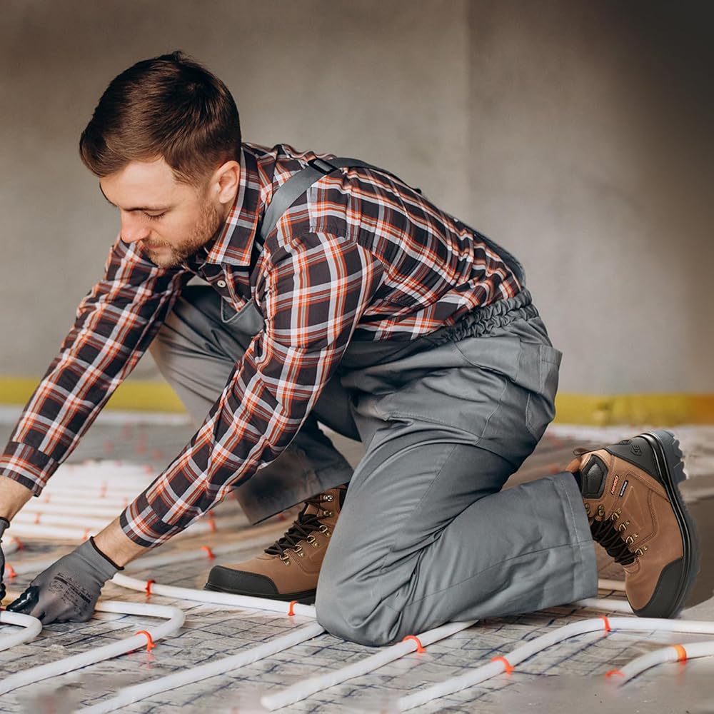 [All-Around Protection]: Your safety is our top priority! Safety steel-toe meets or exceeds ASTM F2413-18 impact (I-75) and compression (C-75), and the Electrical Hazard (EH) protection standards. The construction boots are equipped with a waterproof membrane and moisture-wicking mesh lining, providing complete water protection and preventing moisture from penetrating. Plus, the Kevlar midsole offers puncture resistance, enhancing your protection against any sharp objects.