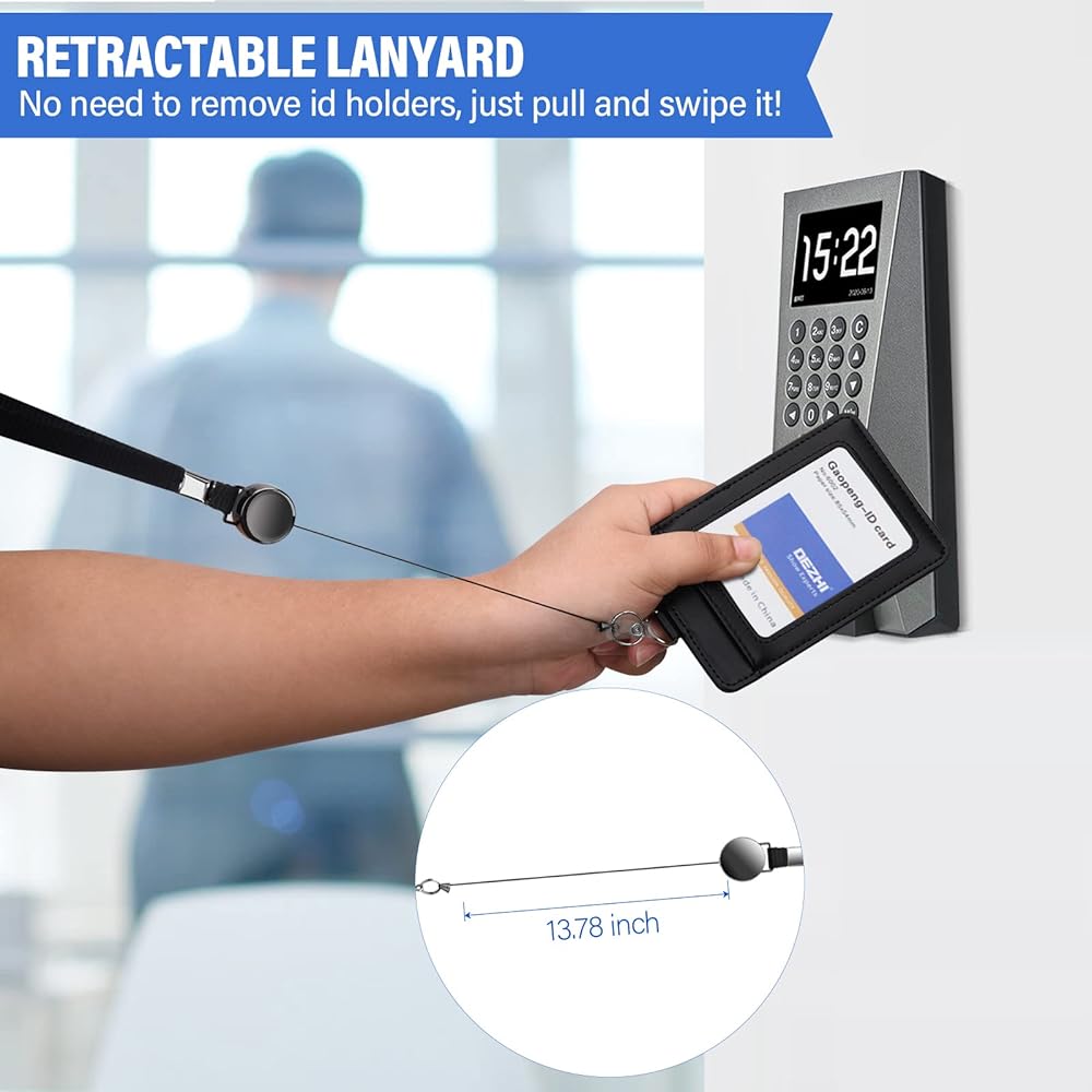 【Retractable Badge Holder】 Unique design metal retractable badge reel with key chain on neck lanyard. A 13.78"/35cm long retractable extension cord allows you to scan ID cards or open doors easily without removing the neck lanyards for id badges.
