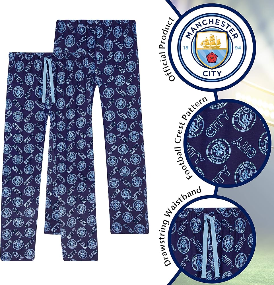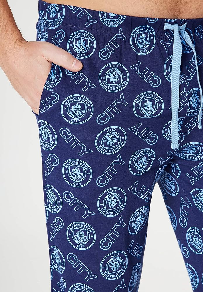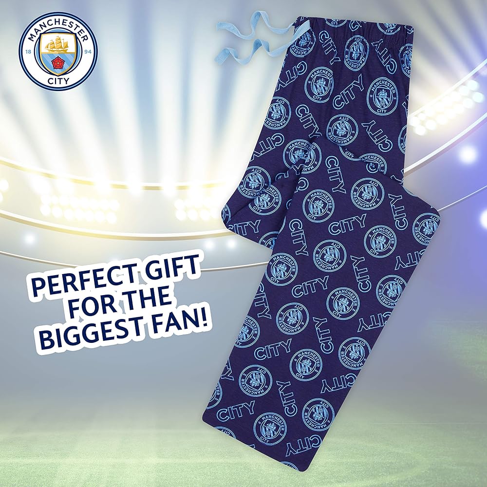 Kick off your loungewear collection with this officially licensed Man City FC mens nightwear. These pyjama bottoms combine style with comfort, made with 100% Cotton material that is soft and breathable and feature a comfortable elasticated waist. The perfect mens pyjama bottoms for wearing after work or on the weekends to watch the football, or get a comfy night's sleep.