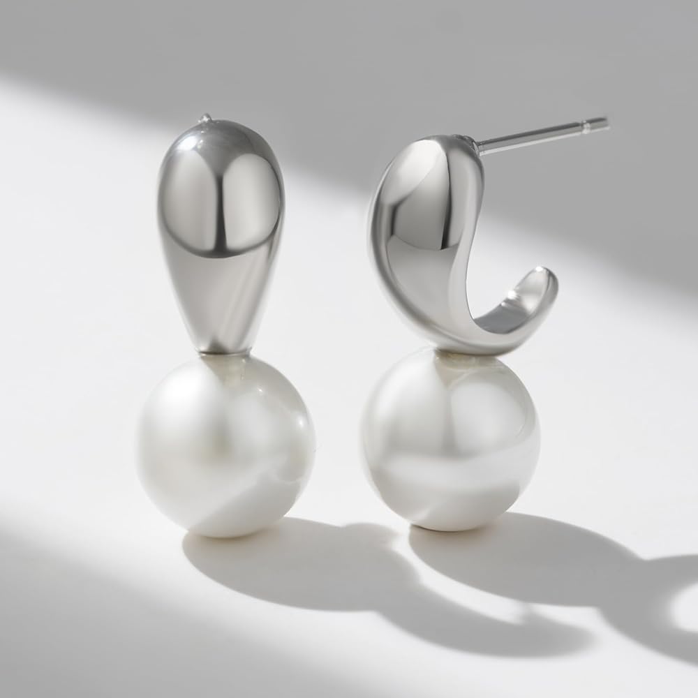 【Material】: Pearl Drop Earrings is handcrafted in high-quality silver plated material,hypoallergenic for sensitive ear, nickel free, lead free.