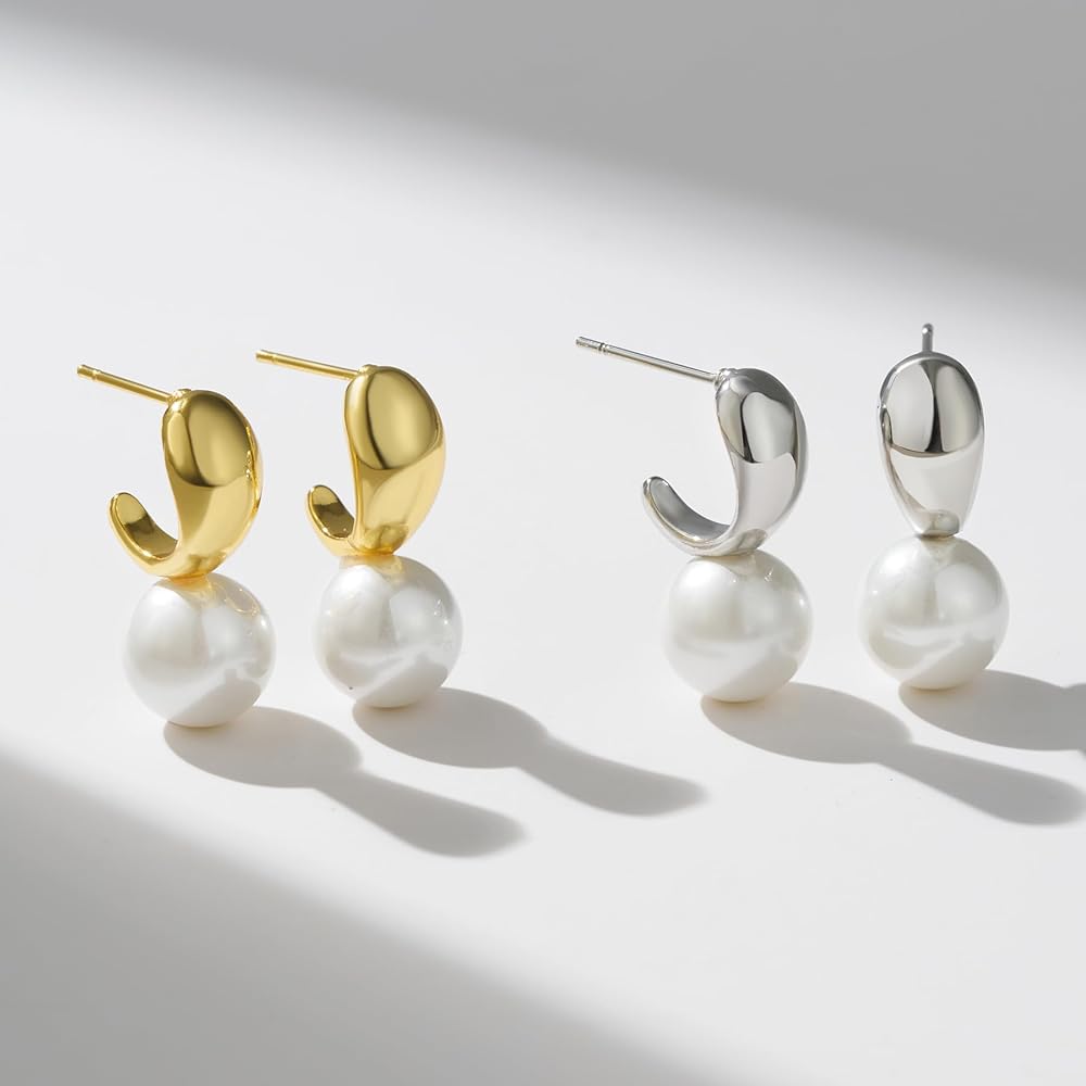 【Must Have Pearl Hoop Earrings】:These pearl hoop earrings are crafted from high-shine shell pearls, exuding an air of elegance. They are the epitome of understated sophistication and are ideal for daily wear, adding a touch of refinement to any outfit.