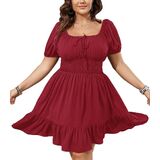 Comfortable Yet Elegant - The plus size holiday dress featured with elastic scoop neck, bring retro style with short lantern sleeve, also as a off-shoulder dresses for women, comfotable fit and make you full of elegant and fashion.