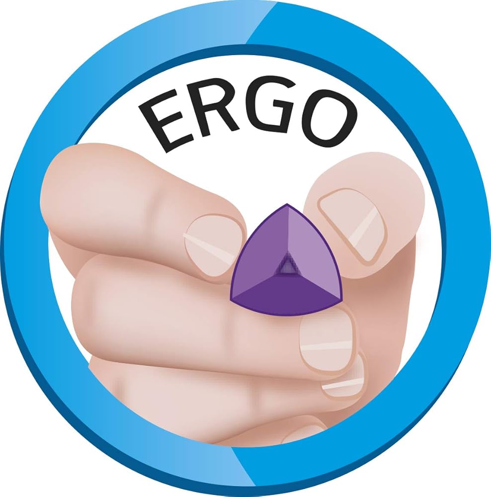 No. 2 pencil features an ergonomic, triangular grip that guides finger placement to help young learners write more comfortably. Thick, break-resistant lead helps prevent breakage from pressure to keep writers from frequently having to resharpen their pencil. Premium Elmwood construction is durable and allows clean, easy sharpening. Latex-free eraser removes marks with minimal pressure for a smudge-free, tear-free erasing.