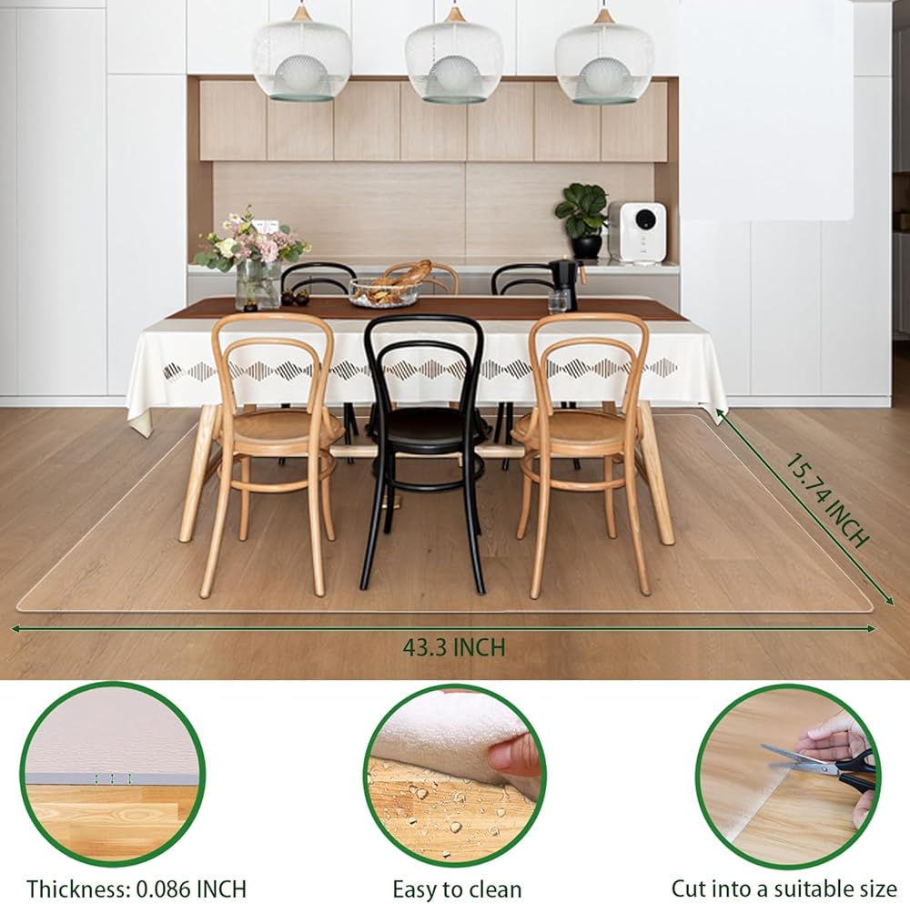 【Clear & Waterproof】The clear design of this floor mat ensures that your precious flooring remains visible, adding to the overall appeal of your home while keeping it protected for years to come. The mat is also water-resistant, making it perfect for use near entryways or in areas that might experience spills or moisture.