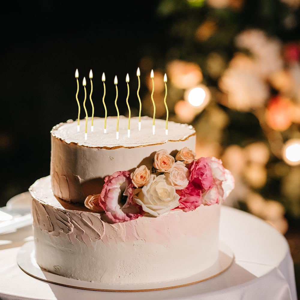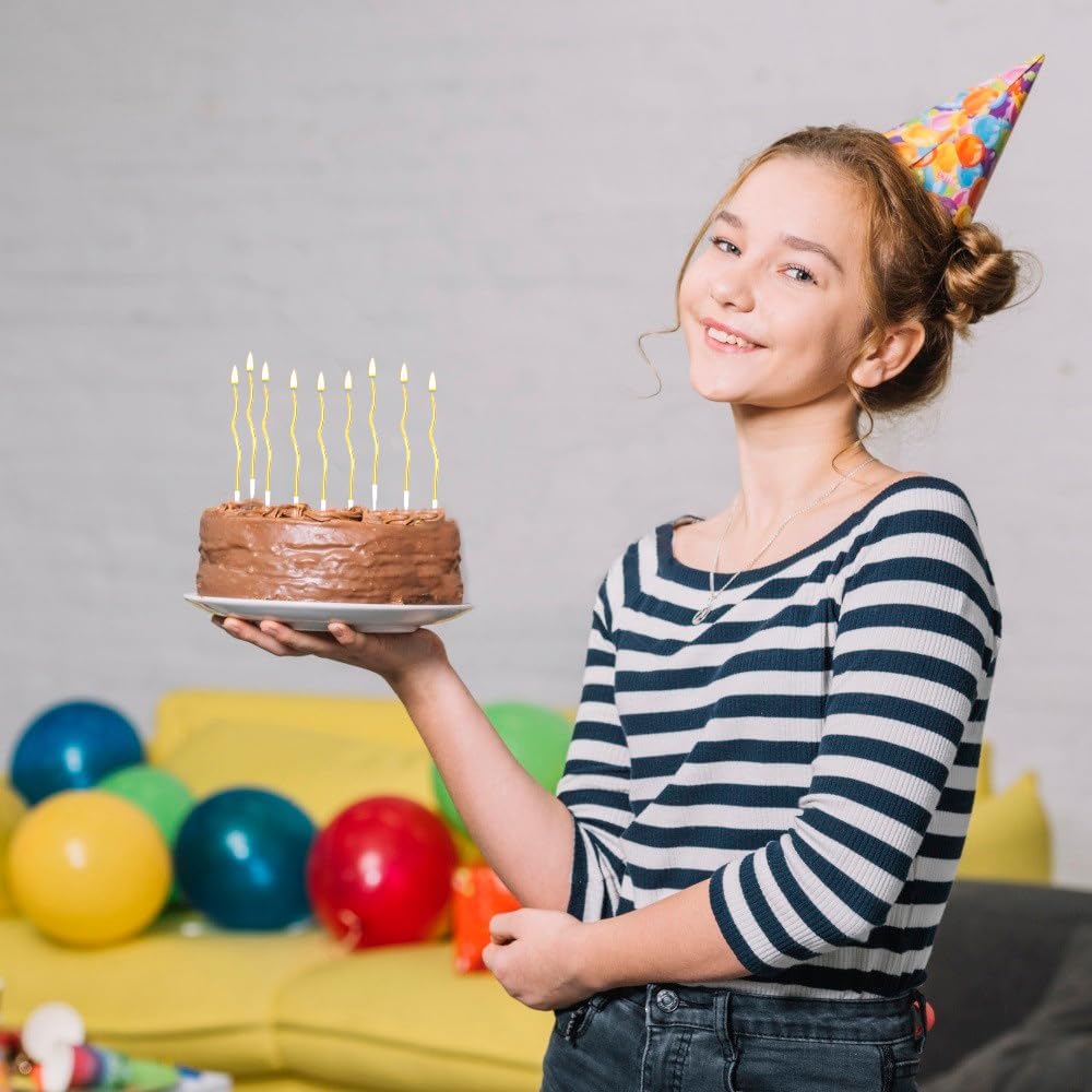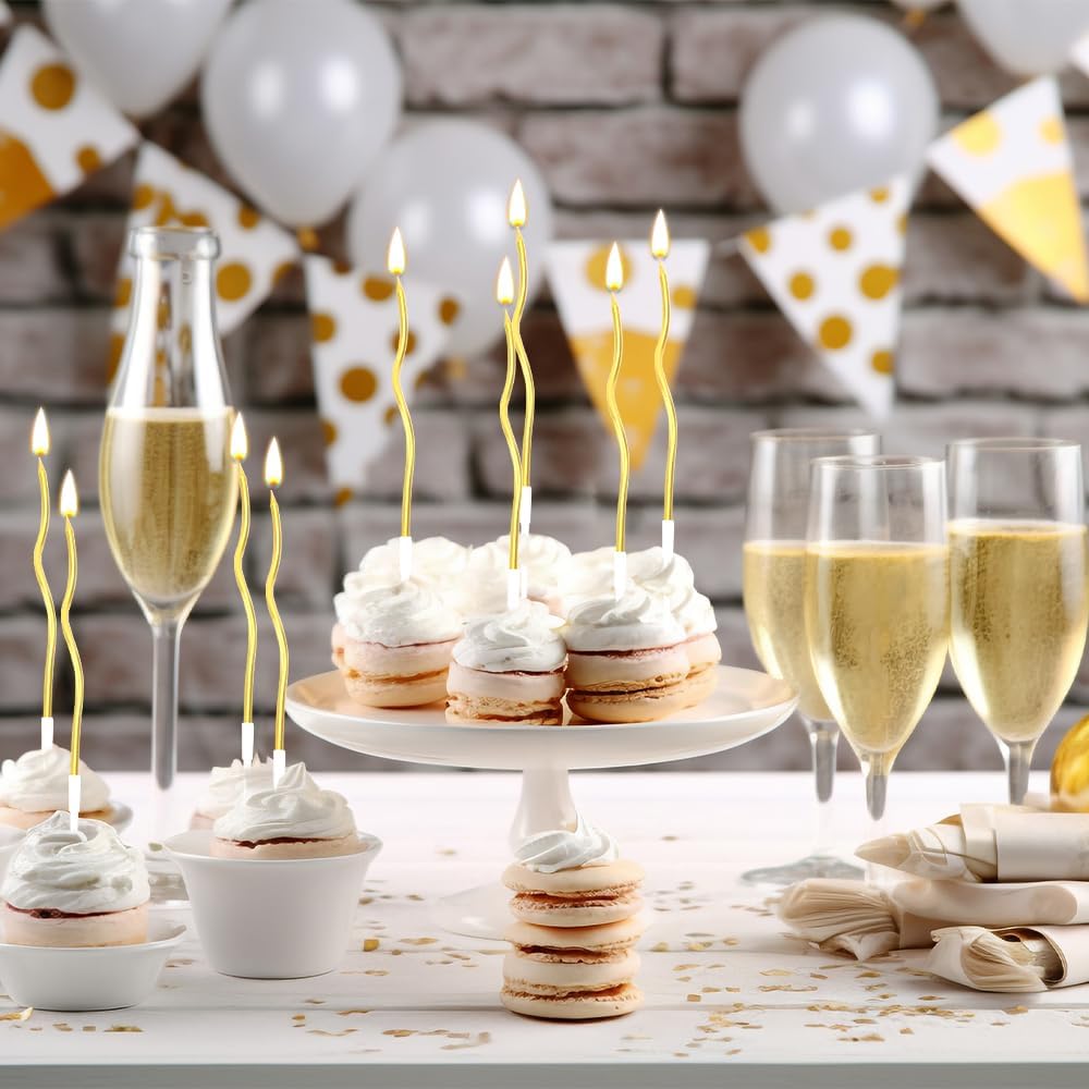 Twisty Birthday Candles 12 Pcs Gold Birthday Candles for Cake Spiral Cake Candles Cupcake Candles Long Thin Candles Curly Coil Cake Candles for Cake Decoration Wedding Party (Assorted Metallic Colors)