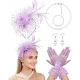 Five Pieces Set: you will get a elastic charming mesh hat,a pair of short elastic lace gloves,exquisite necklace,bracelet and Earrings.vintage style with a bouncy mesh and flighty feathers,it will be your go-to fascinator for any seasons.